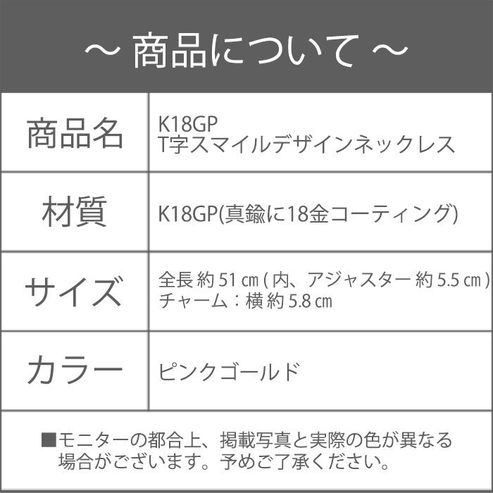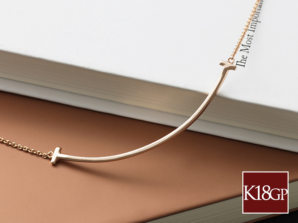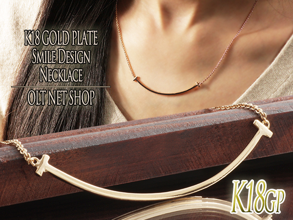 ネックレス レディース T字 スマイル バー ピンクゴールド 18金 18kコーティング チェーン シンプル/K18GP T字スマイルデザインネックレス