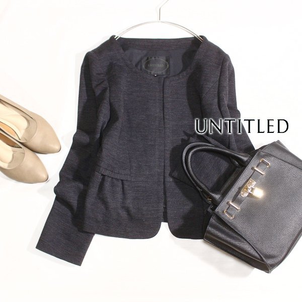 美品 UNTITLED アンタイトル ウール100% ノーカラー ストレッチ ジャケット 2号 M 秋 冬 25C10