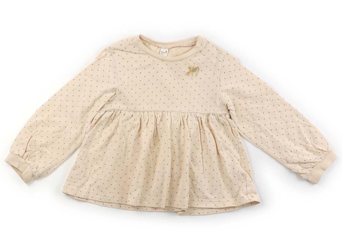 カットソー地で、リボンはベロア地。袖口に黒ずみ・スカート部分に黄色シミがあり。普段使いにいかがでしょうか。