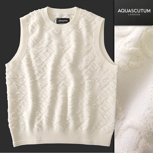 英国ブランドの上品さを感じさせる、Aquascutum GOLF(アクアスキュータム ゴルフ)ロゴパイルクルーネックニットベストです。 ブランドロゴを全体にあしらった立体的なパイルデザインが特徴で、シンプルながらも存在感のある仕上がり。 柔らかく肌触りの良いパイル素材を使用し、軽やかで快適な着心地を実現しています。 程よくリラックス感のあるシルエットで、ラウンドはもちろんタウンユースにも最適。 スポーティーさとエレガンスを併せ持つ、大人のゴルフスタイルに映える一枚です。 |