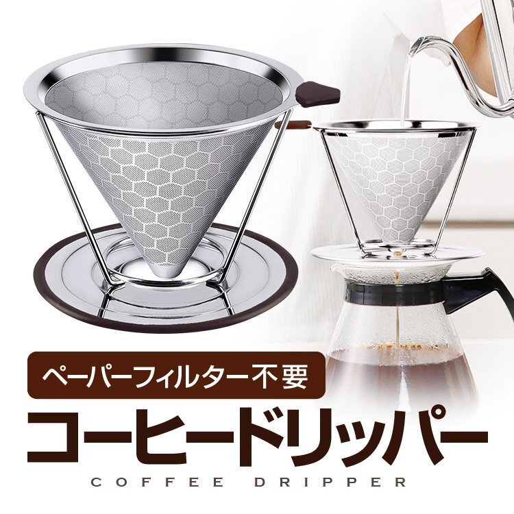 ◆ペーパーフィルター不要 コーヒードリッパー ステンレス コクのあるコーヒーを楽しめる ハニカム構造 耐熱 耐腐食 耐久 1-3杯用 二重メッシュ構造 お手入れ簡単 DPCF125STD