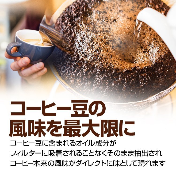 ペーパーフィルターでの抽出と違い、コーヒー豆のオイル成分まで抽出できるので、豆本来の香りや味をダイレクトに味わうことができます。