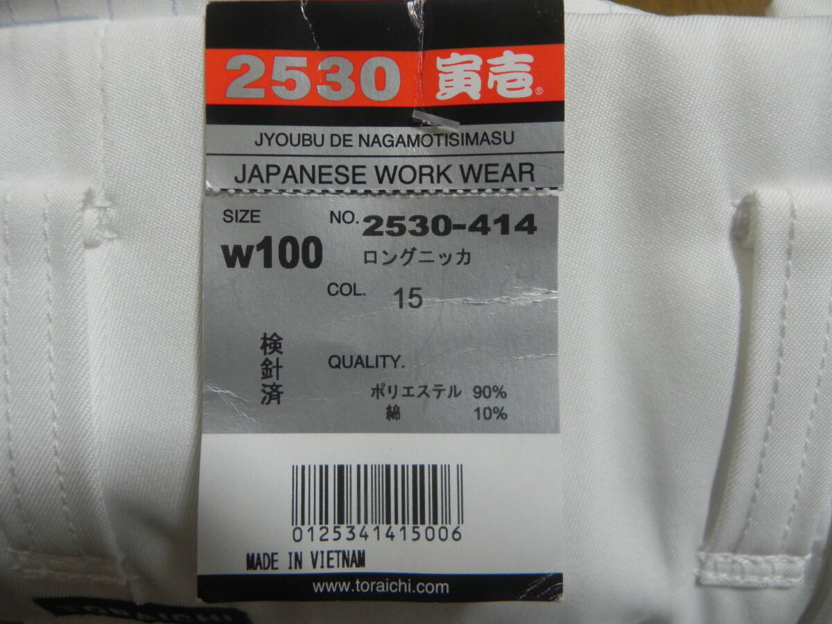 【ラスト1点】 寅壱 2530 ロングニッカ W100 *COL.15(シロ) *スーパー制電 ※廃盤品 ヴィンテージ 超レア!