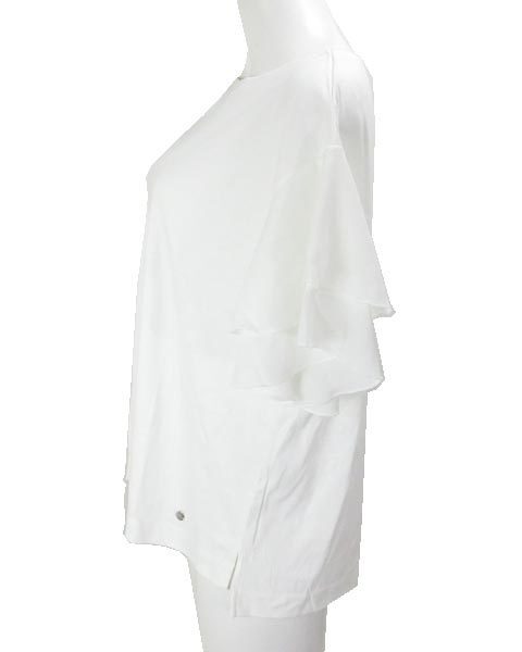 | シフォン二段フリル袖がポイント☆肌触りも良く、伸縮性もあって◎です。左下部にエンブレム、両サイドにスリットがあります。 |