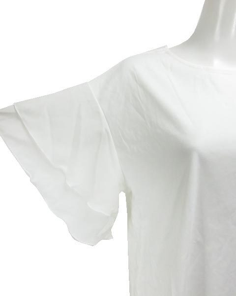 | コメント | シフォン二段フリル袖がポイント☆ 肌触りも良く、伸縮性もあって◎です。 左下部にエンブレム、両サイドにスリットがあります。 |