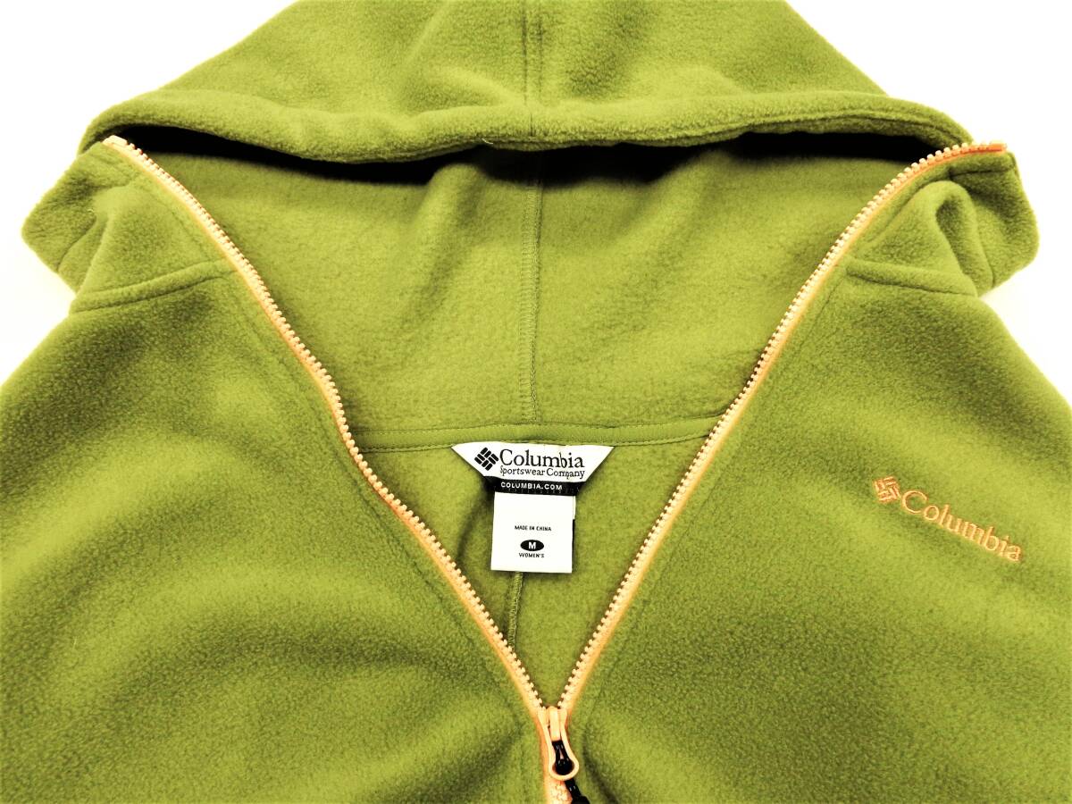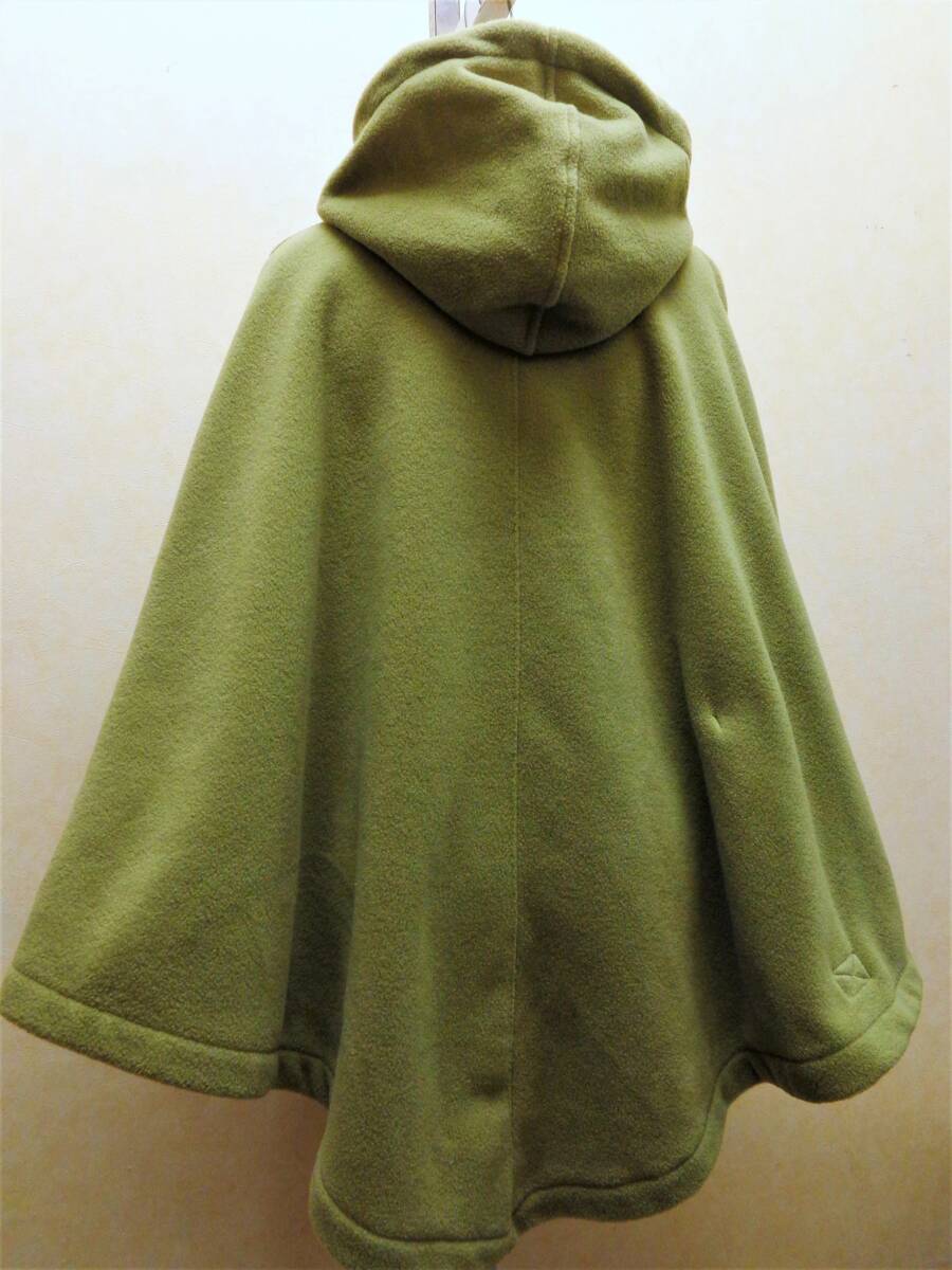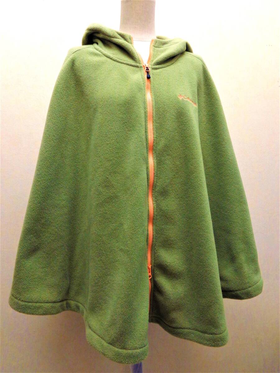 ◇◇『コロンビア』:スモーキーなわさびグリーン、ウォーム感あるフリース素材のポンチョです。 裏側にストラップ付で、リュック等に引っ掛けて持ち運ぶことも可能です。