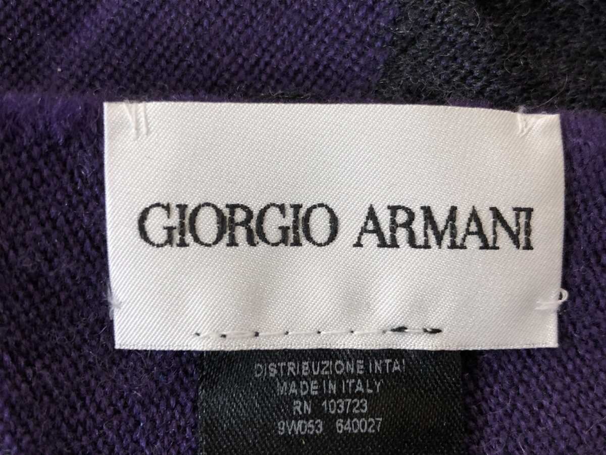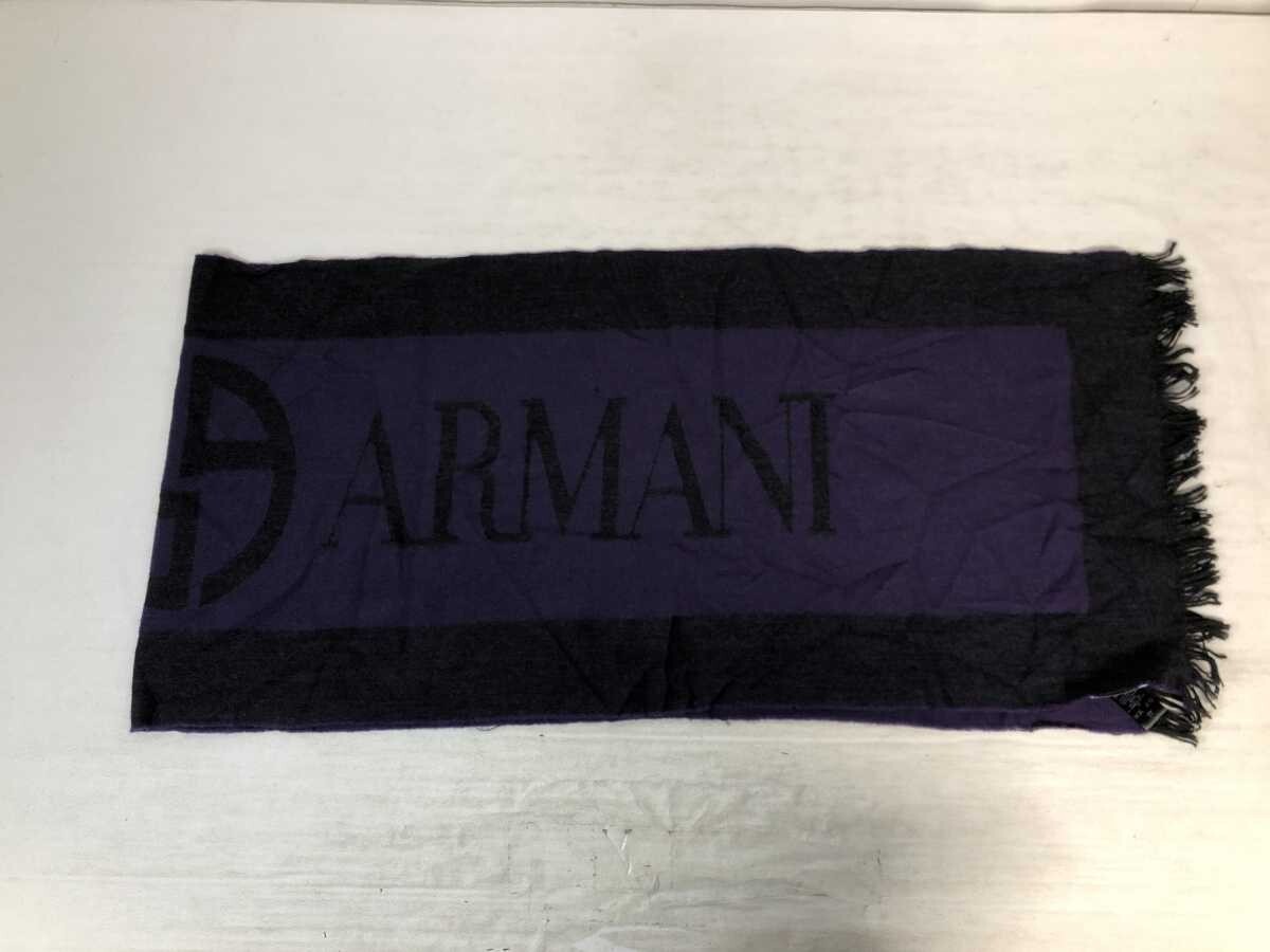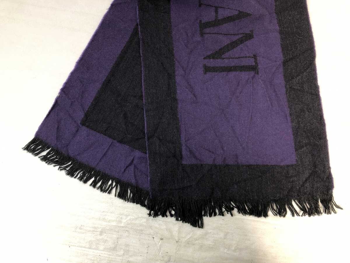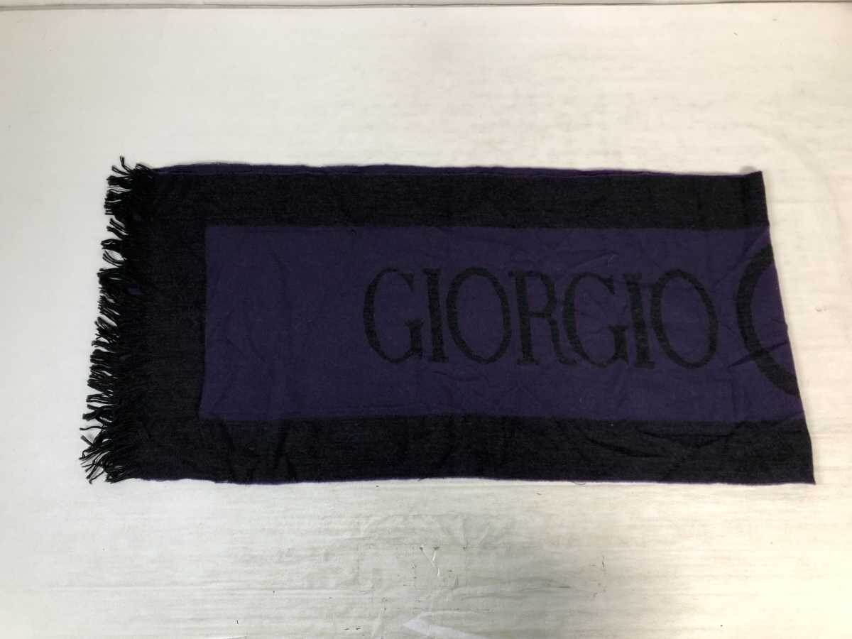 Italy製 ジョルジオ・アルマーニ GIORGIO ARMANI レトロ オールド ラグジュアリー モード ビッグロゴ フリンジ付き マフラー ストール 紫黒です。