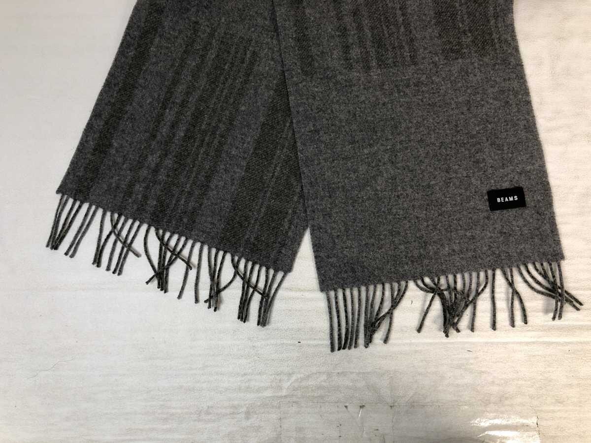 ビームス BEAMS レトロ トラッド クラシック マルチストライプ フランネル フリンジマフラー メンズ ウール100% グレーです。