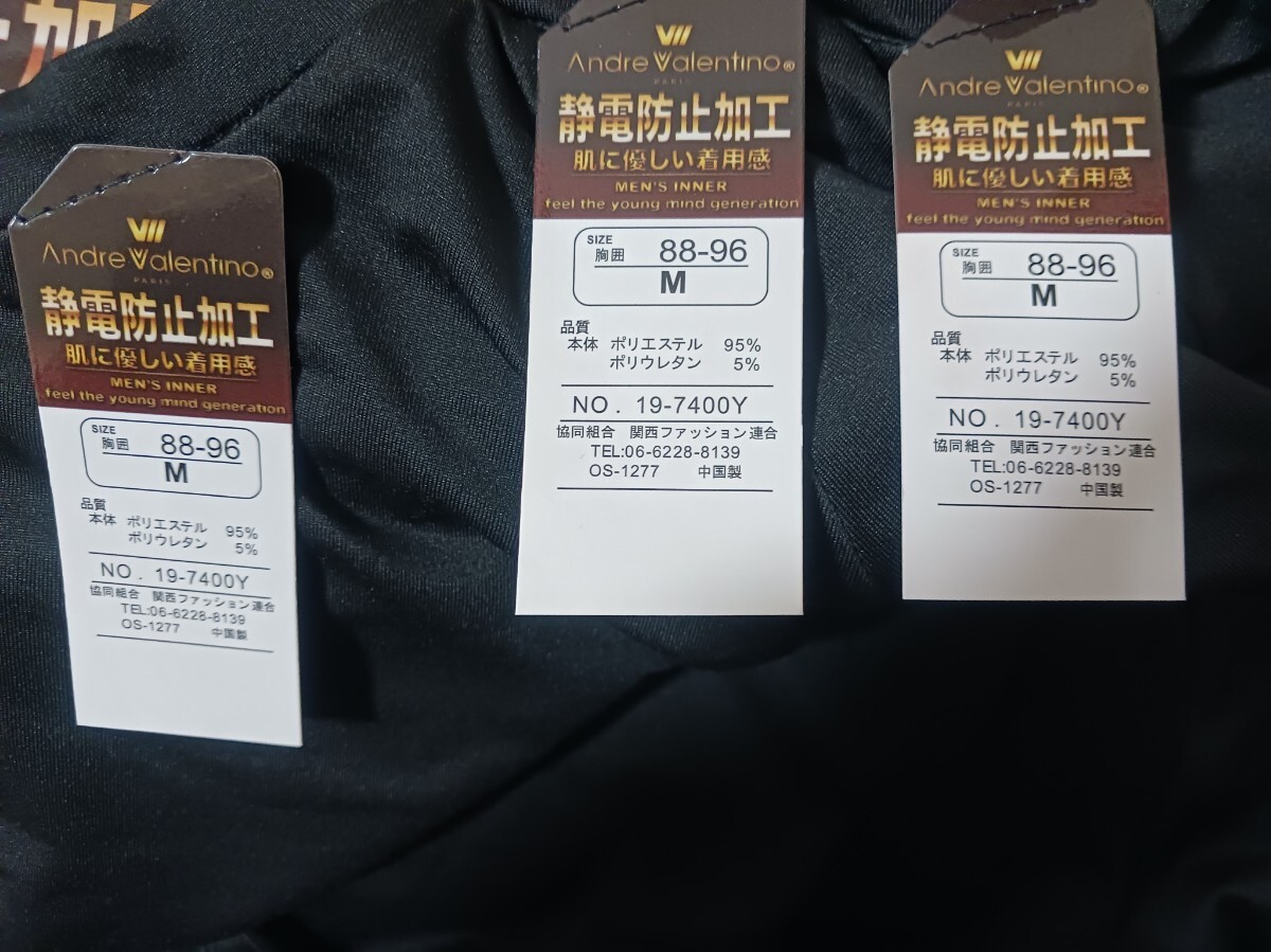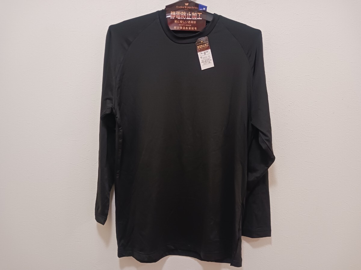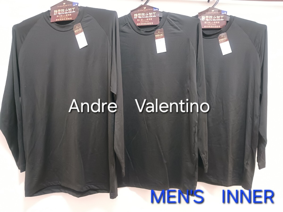 5995 メンズ裏起毛インナー長袖シャツ|Andre Valentino|黒|Mサイズ×3枚|新品未使用|静電防止軽量保温|丸首ローネック|アンダーシャツ肌着