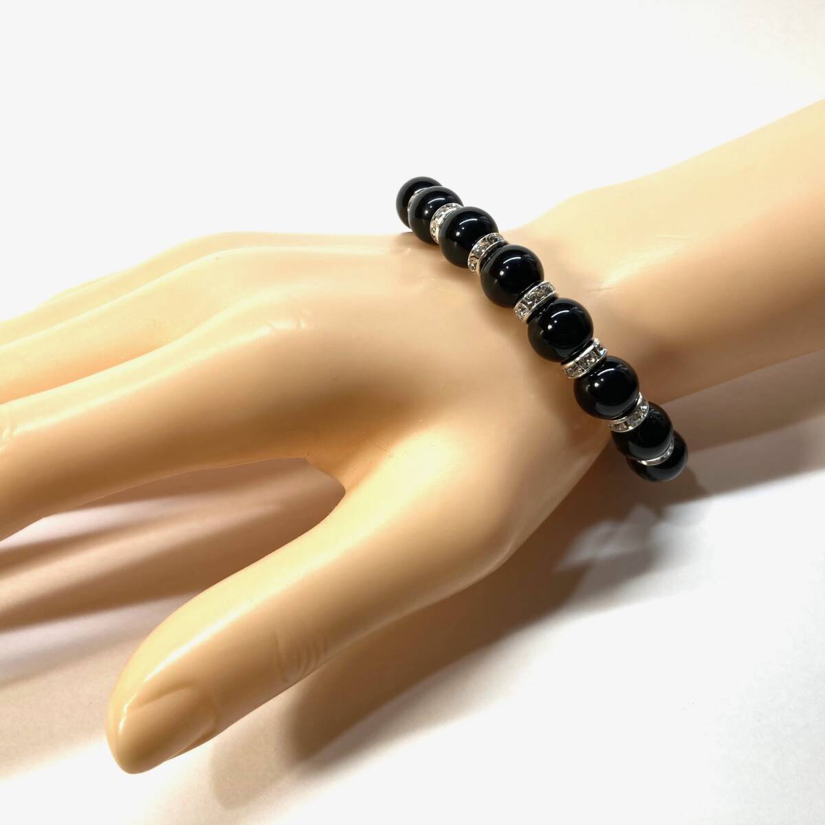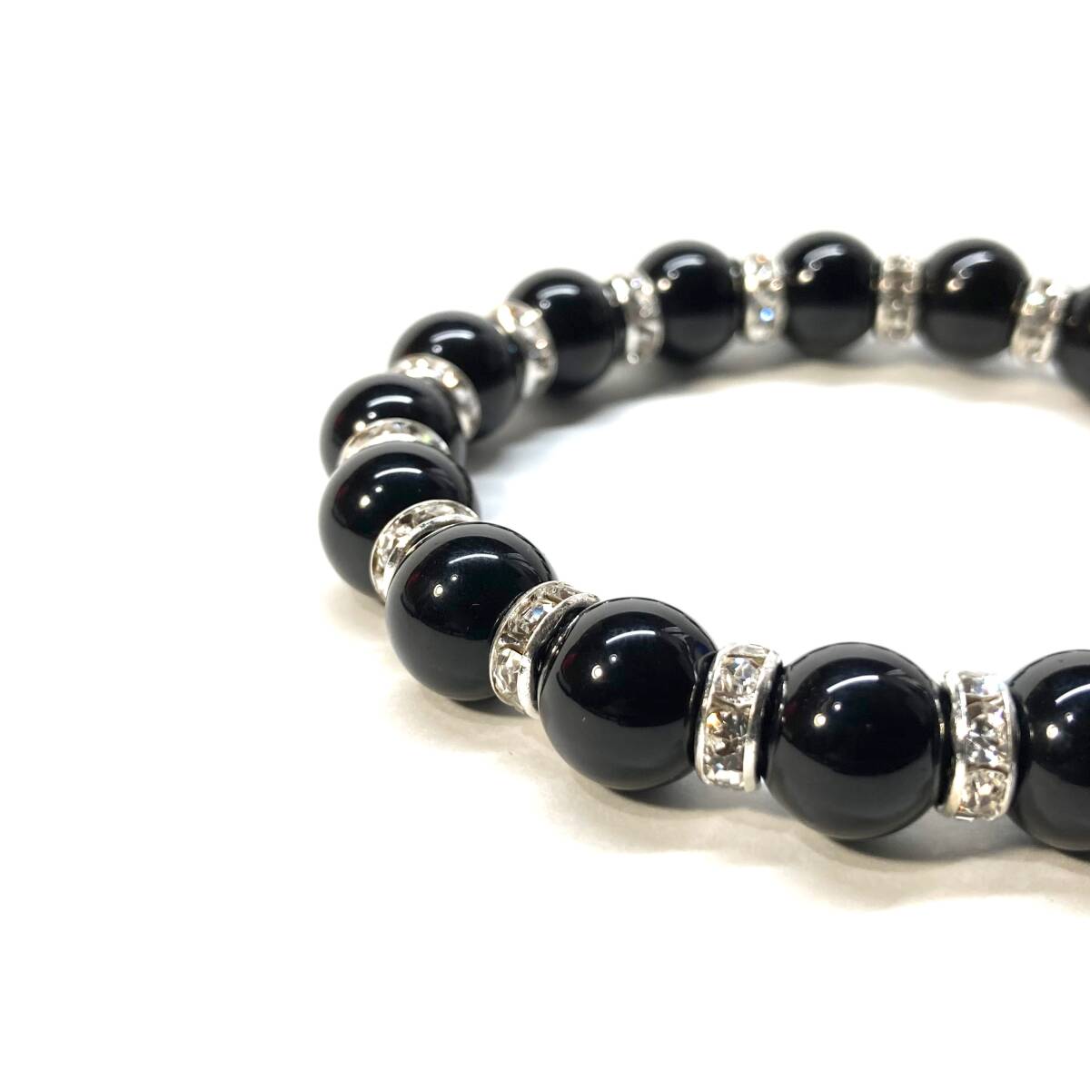 こちらは、10mm玉のモリオンを使用したパワーストーンブレスレットです。間にはロンデルを挟み高級感あるブレスレットに仕上げています。石大きさは腕にも馴染みやすいように10mm玉を使用して、サイズは内径約18cmです。(サイズ調節も無料で承っています。サイズ変更の場合は落札後、取引ナビにてご一報くださいませ。) 数に限りがございますので気になる方はお早めにどうぞ。