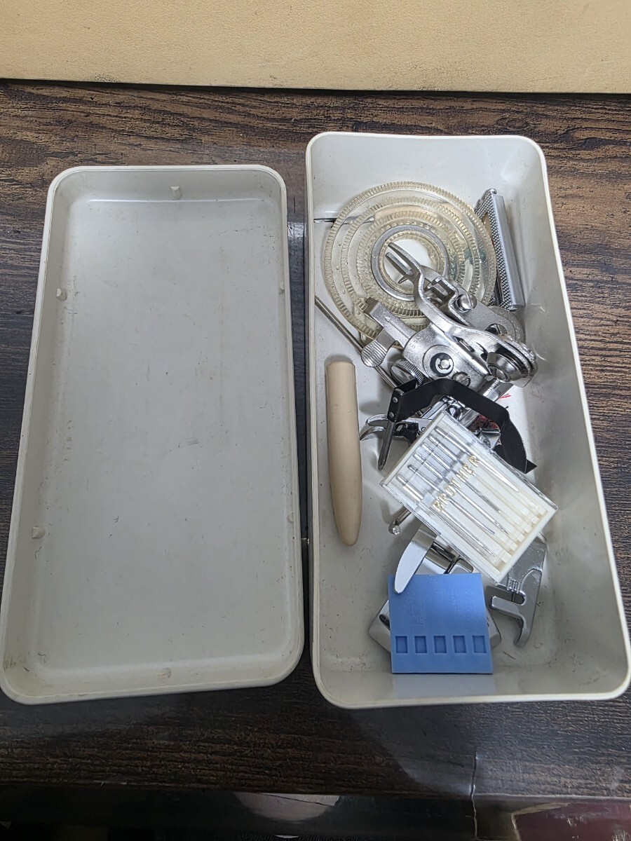 譲り物の為詳しい事はわかりませんがフットコントローラーを接続し動作確認を行い針が上下する事を確認致しました。