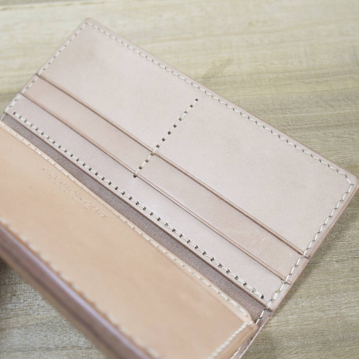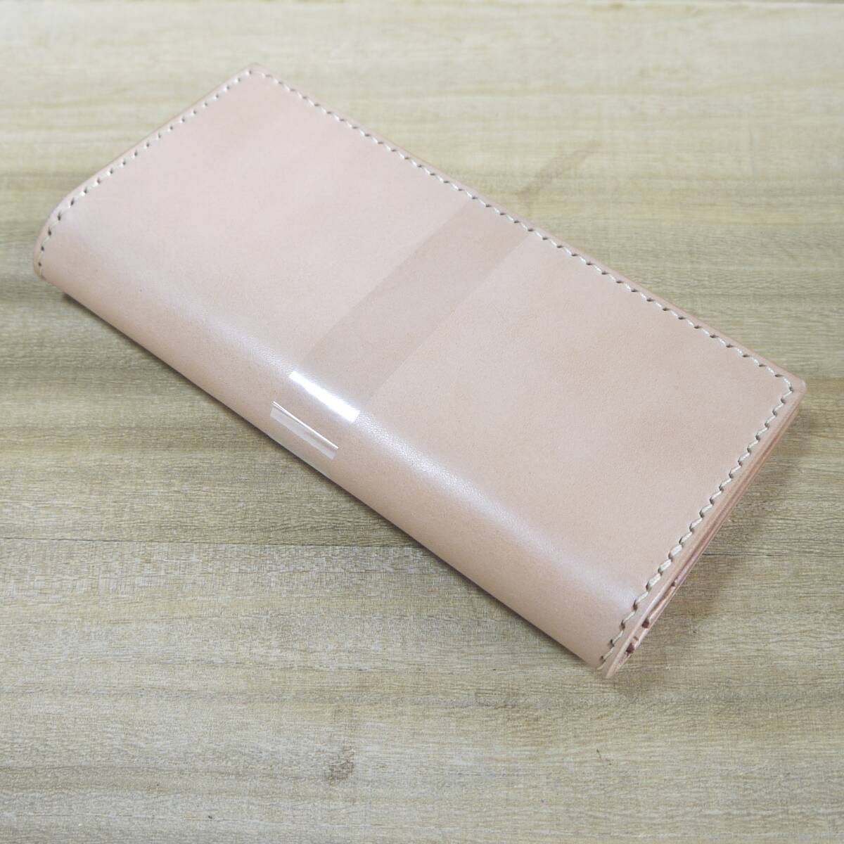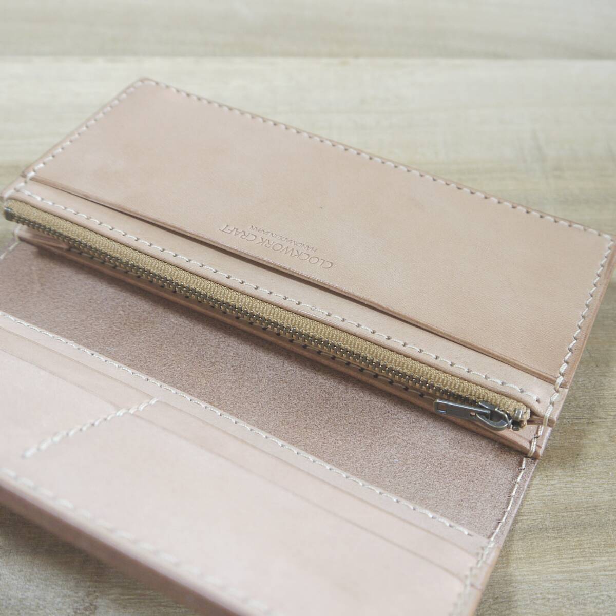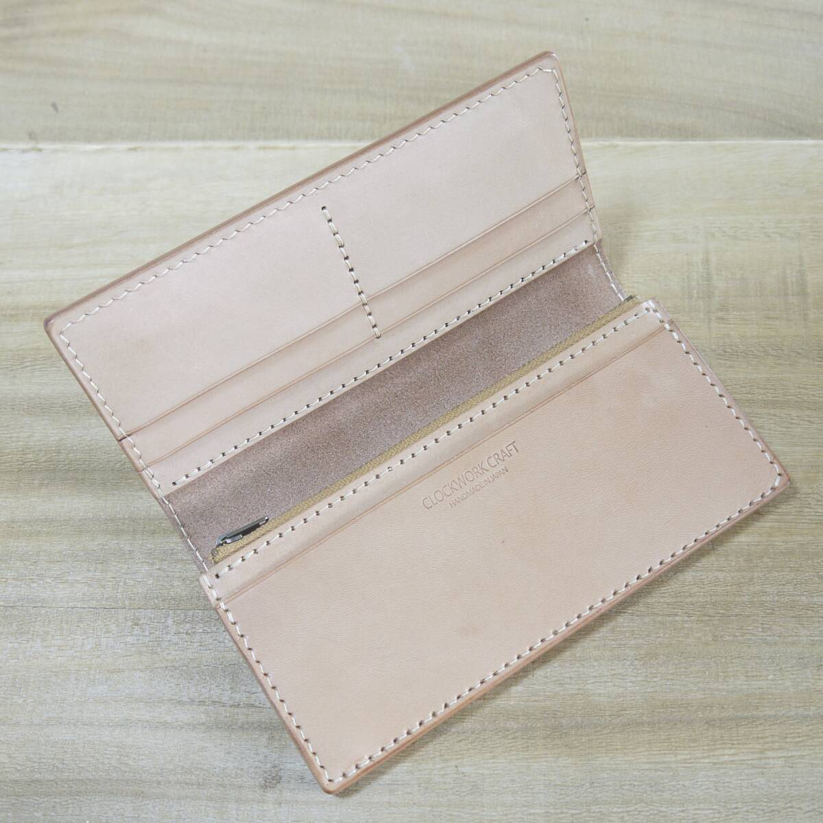 ヌメ革 フル栃木レザー サドルレザー 赤タグ付き ロングウォレット 二つ折り 小銭入れあり 生成り ハンドメイド CLOCKWORK CRAFT
