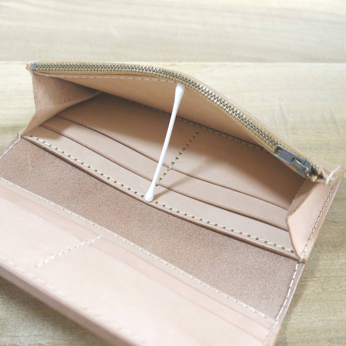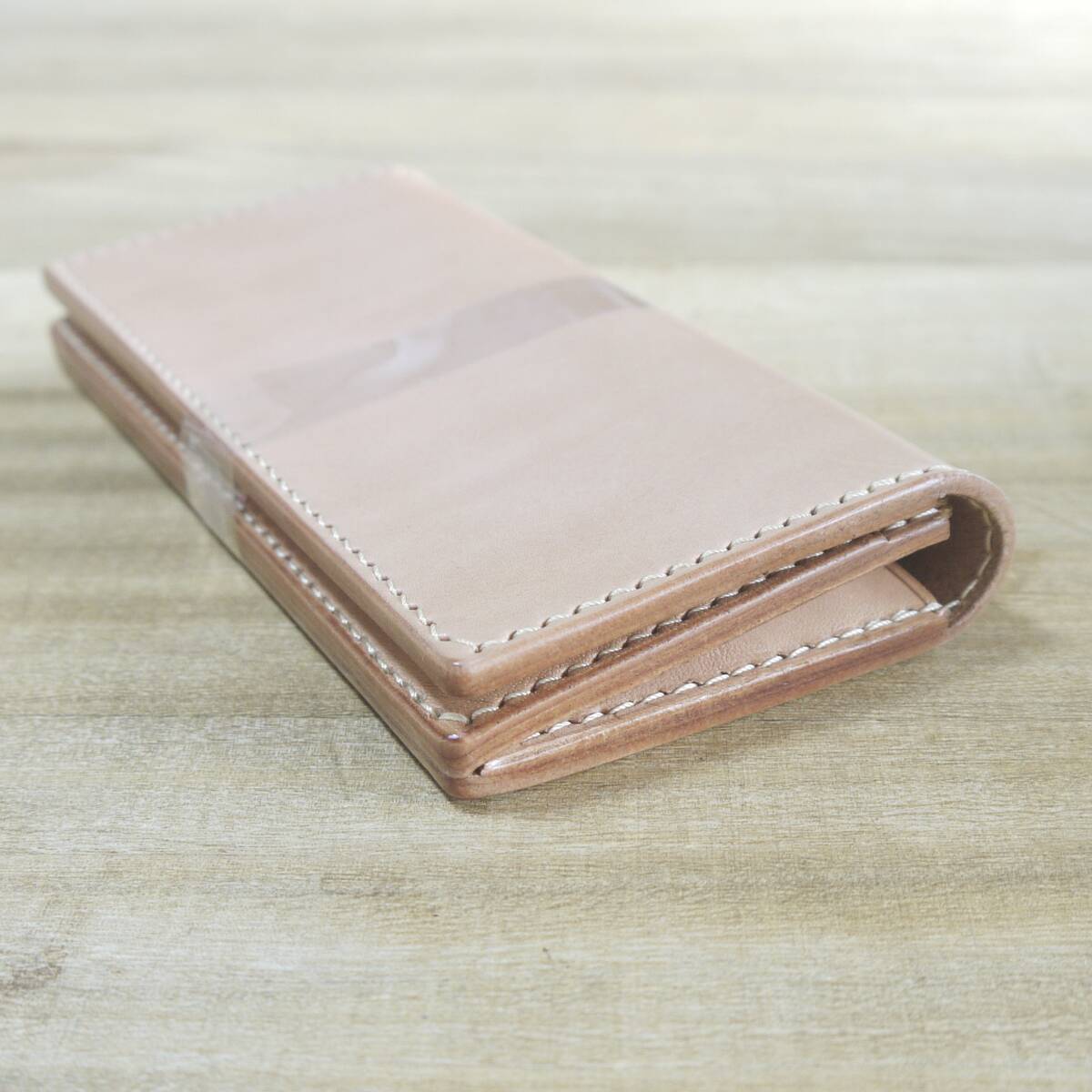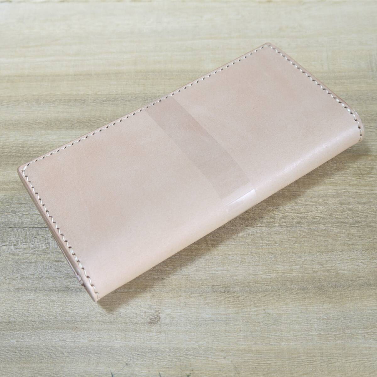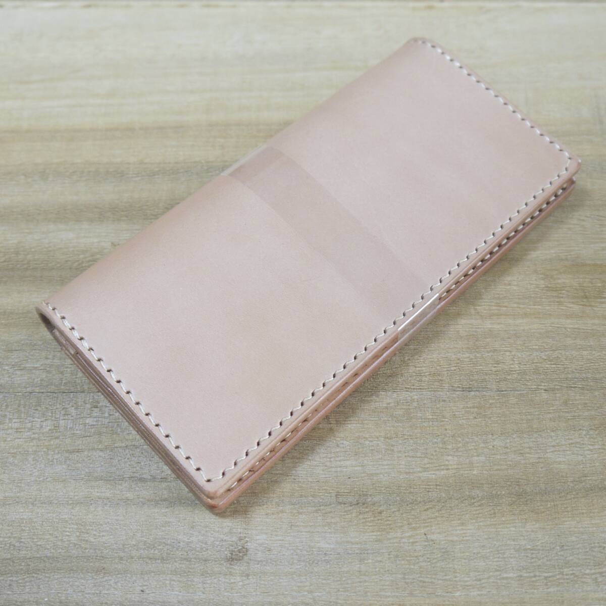 ヌメ革 フル栃木レザー サドルレザー 赤タグ付き ロングウォレット 二つ折り 小銭入れあり 生成り ハンドメイド CLOCKWORK CRAFT