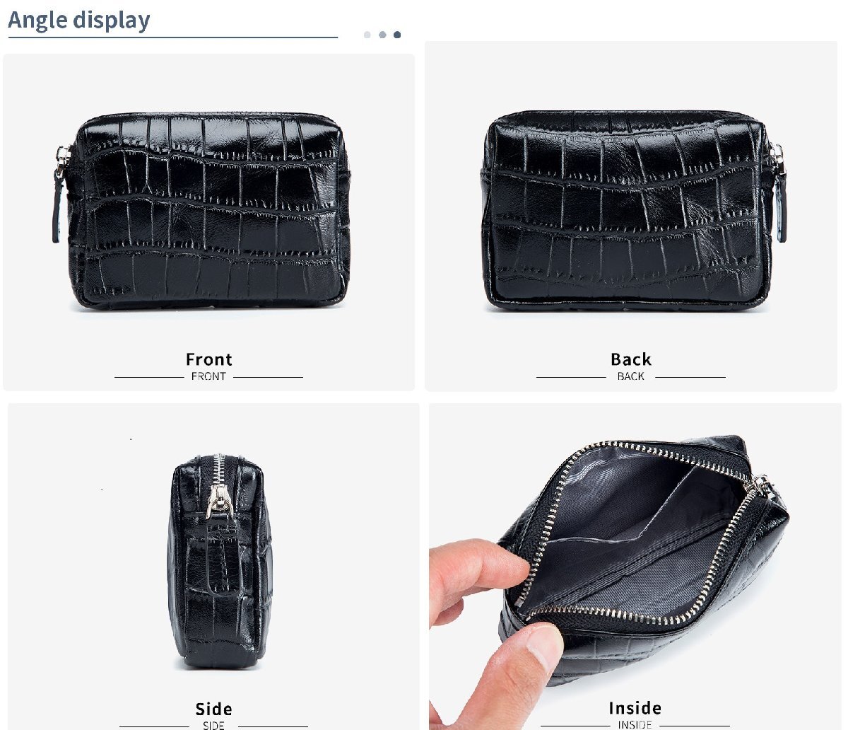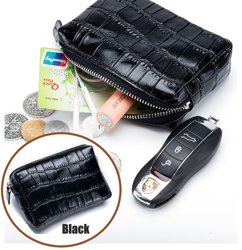 ミニポーチ 牛皮 クロコ型押し ブラック レザー 鍵入れ 小銭入れ シンプル レザーキーケース n525