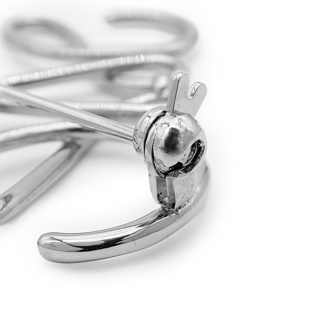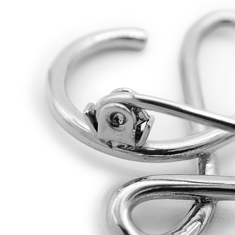 | LOEWEの頭文字である"L"を4つ組み合わせた、 アイコニックなアナグラムロゴをラグジュアリーなブローチ仕上げに。 曲線を複雑に組み合わせたアナグラムロゴは、 シンプルなルックスでありながら目を惹く華やかな印象のアイテム。 トップスやバッグ、スカーフ等の幅広いアイテムのアクセントになります。 |