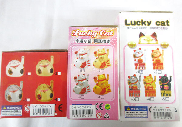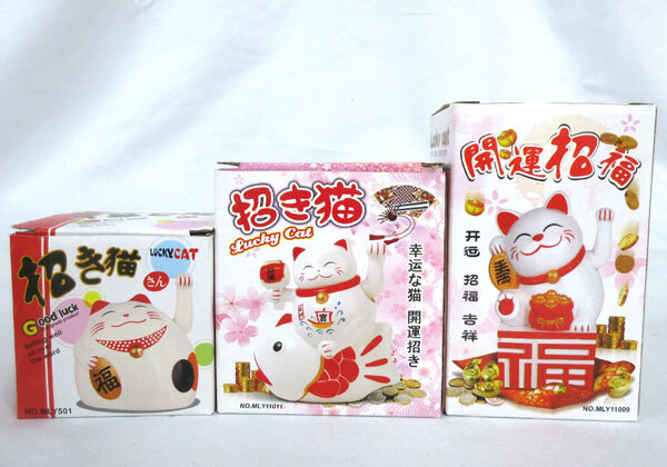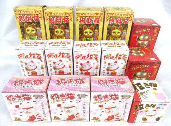 | 内 容 | ■置物 招き猫 ■パッケージ寸:約H8×W8.5×D8cm〜H16×W10.5×D10cm ●(単3電池1本使用) ・招財猫×4点 ・開運招猫×4点 ・招き猫×2種4点 ●(単4電池1本使用) ・他×2点 ◆総額 18700円相当 ※パッケージに汚れあります |