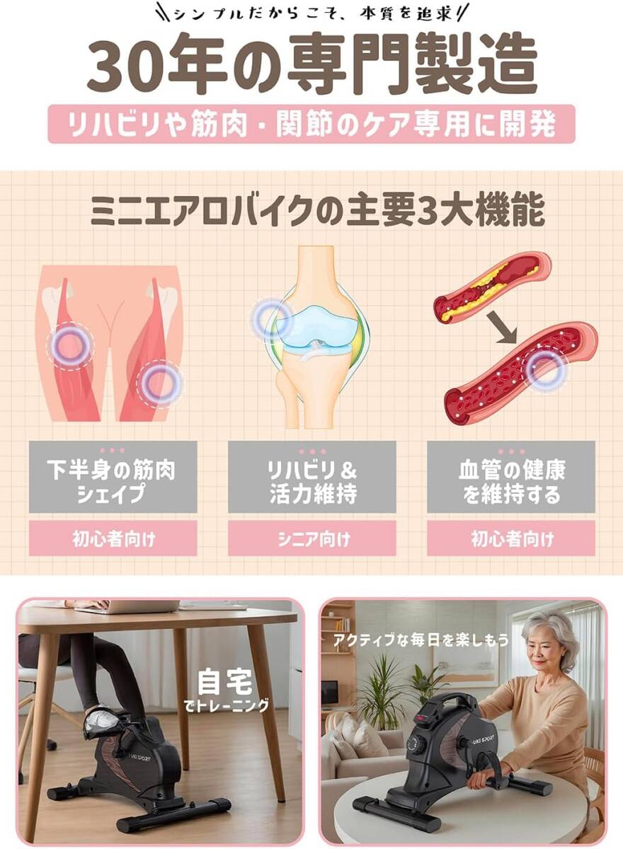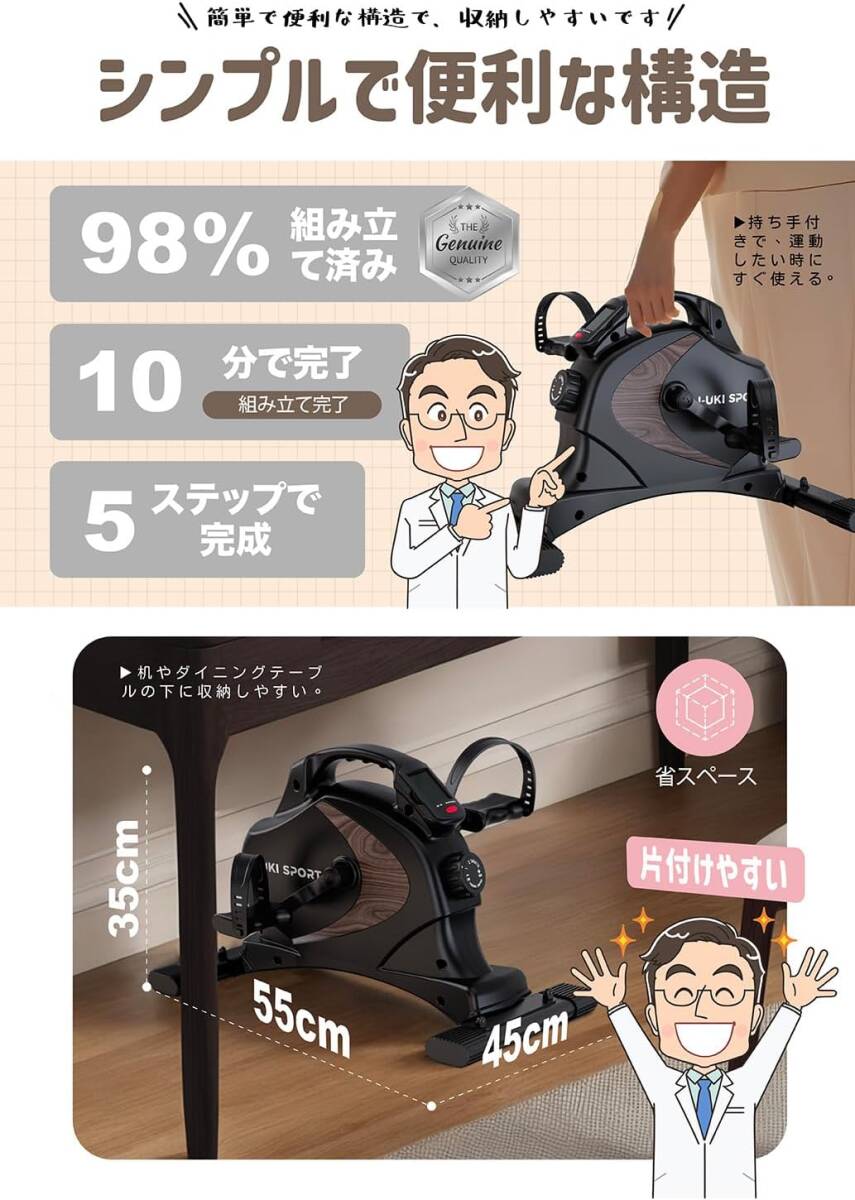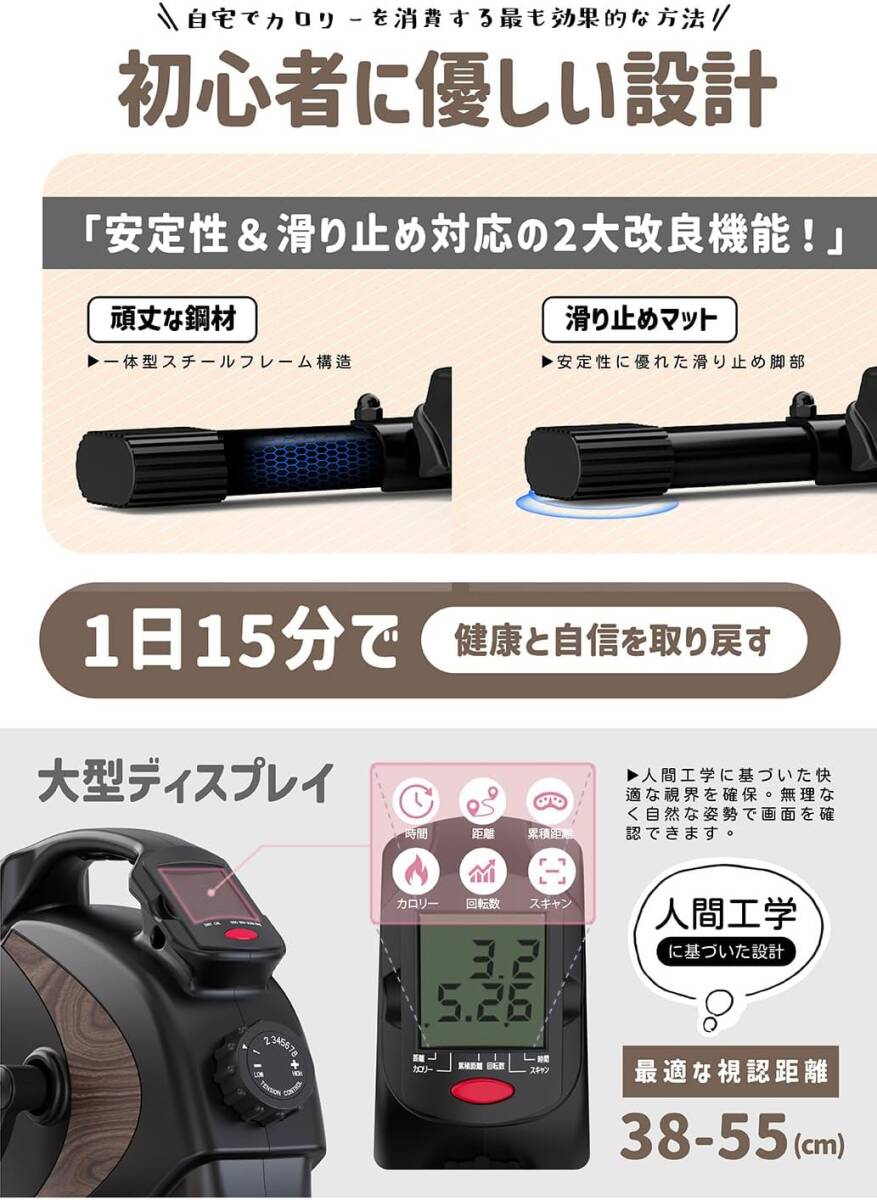 木目調デザイン 室内フィットネスバイク ミニサイズ 高齢者向け 家庭用 静音 リハビリにも最適 組立簡単 コンパクトバイク 8段階調節