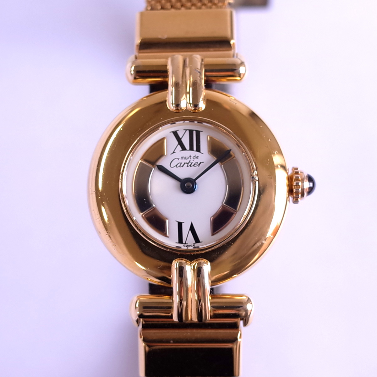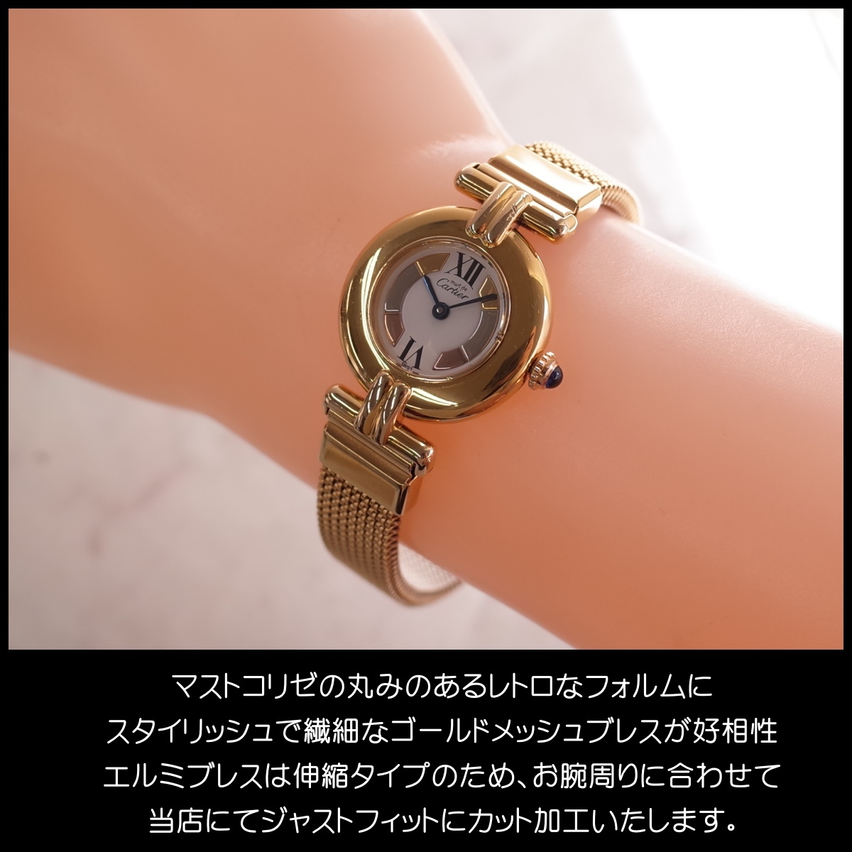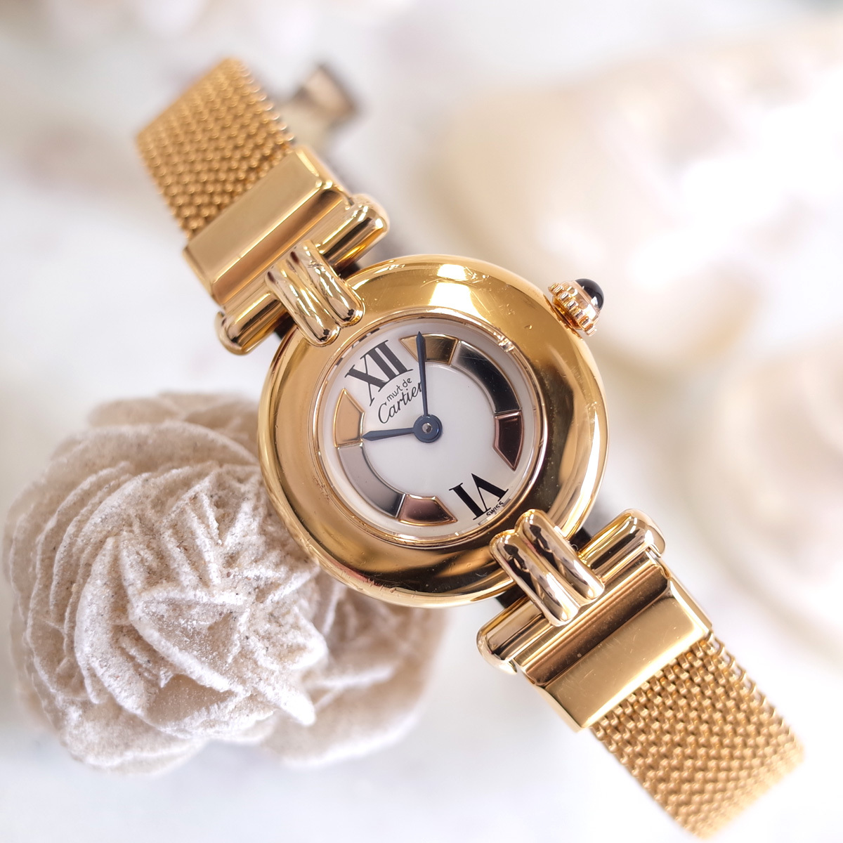 | コンディション | ABランク ・ケースはソフトに磨き仕上げ済 3時方向の縁に打痕あり 小キズ残りあり、サイドにも塵キズあり ・文字盤シミヨゴレなく美品 ・風防 美品 愛らしいフォルムとヴィンテージ感のある質感が魅力のマストコリゼ スリーゴールドのトリニティにブルースティール。 モダンでは華やかなダイヤルが魅力的です。 新品エルミブレスをセッティングしております。 ジャストサイズに調整しますので、実寸をお知らせください。 |