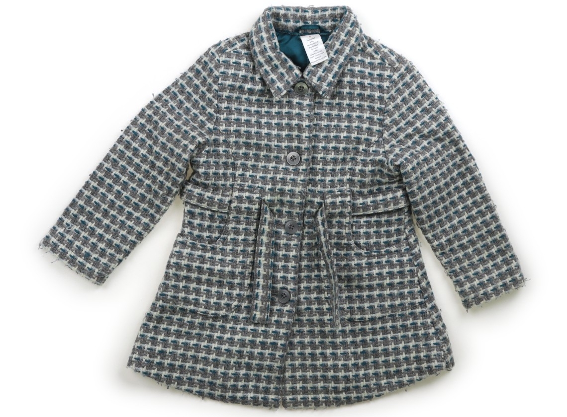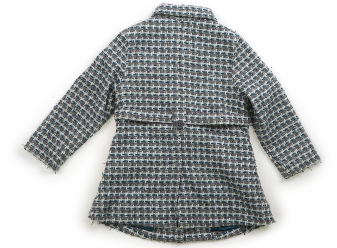 ポリエステル・アクリル・ウール素材。裏地付き。前ボタン開き。実際のサイズ表記は、4。全体的に毛羽立ちが目立ちます。