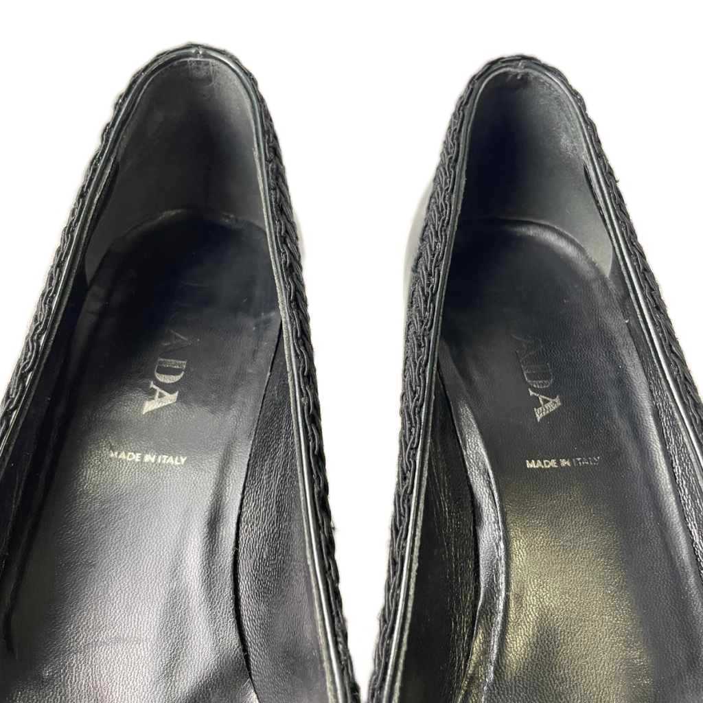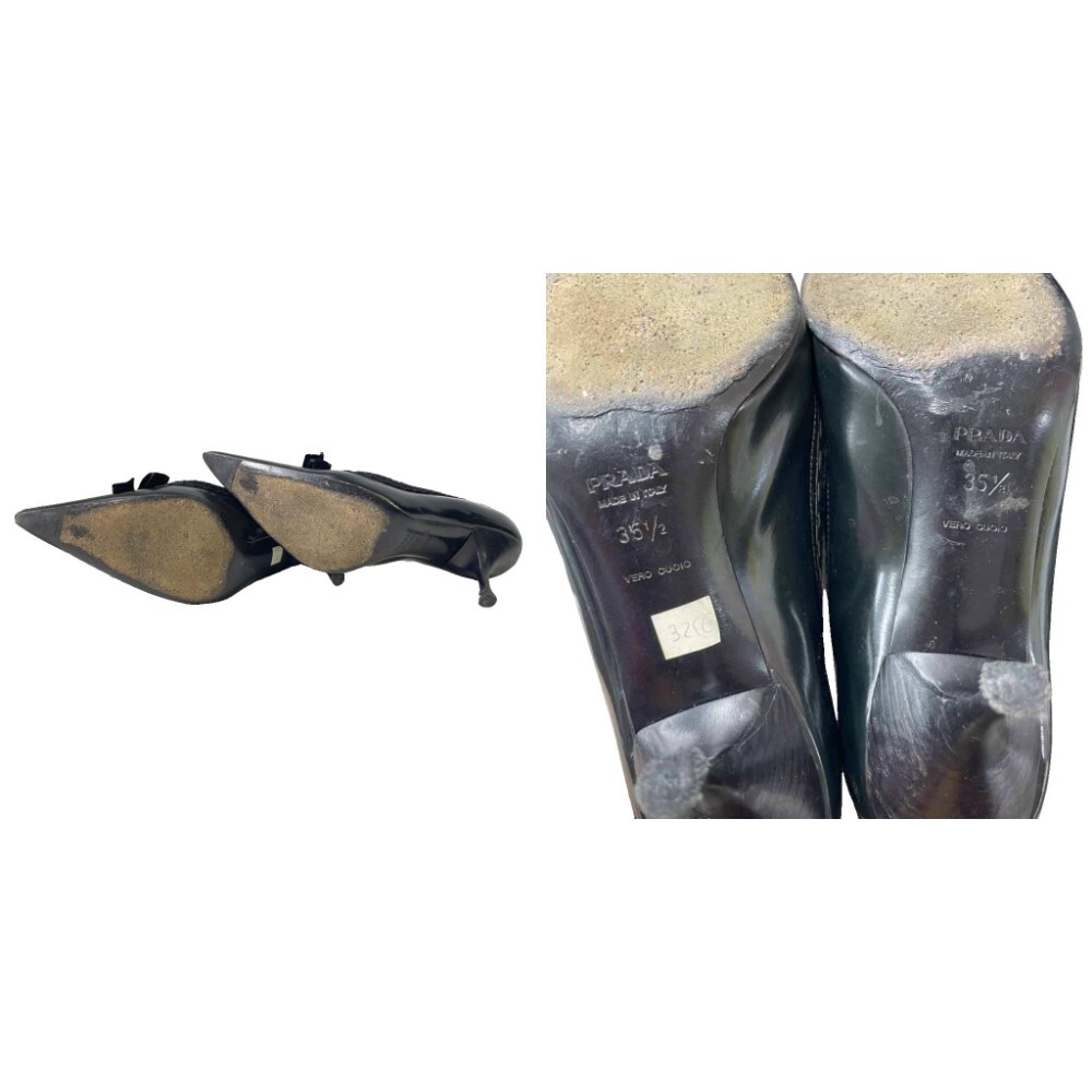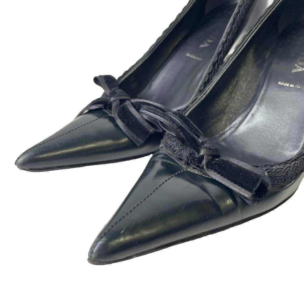 プラダ PRADA ベロアリボン レザー ピンヒール パンプス ポインテッドトゥ 35.5 黒 ブラック レディース