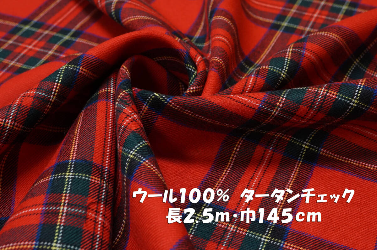 ウール100%のタータンチェック生地の出品でございますが、現品限りでございます。