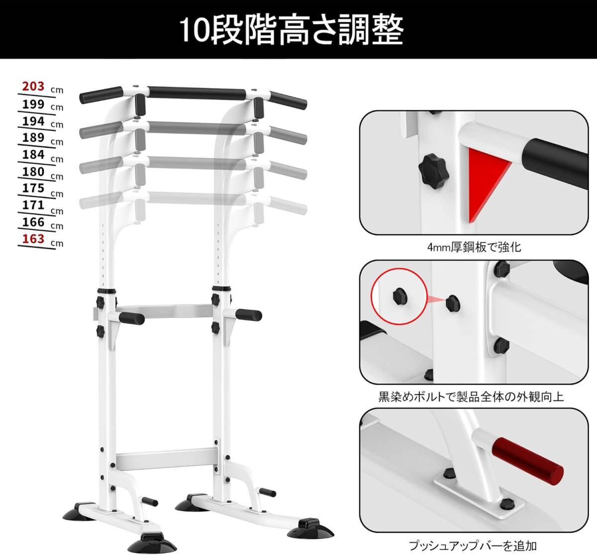 ホワイト色 1日1分ぶら下がるだけでカラダが整う ぶら下がり健康器 懸垂バー 懸垂マシン コンパクト/耐荷重150kg/2年保証