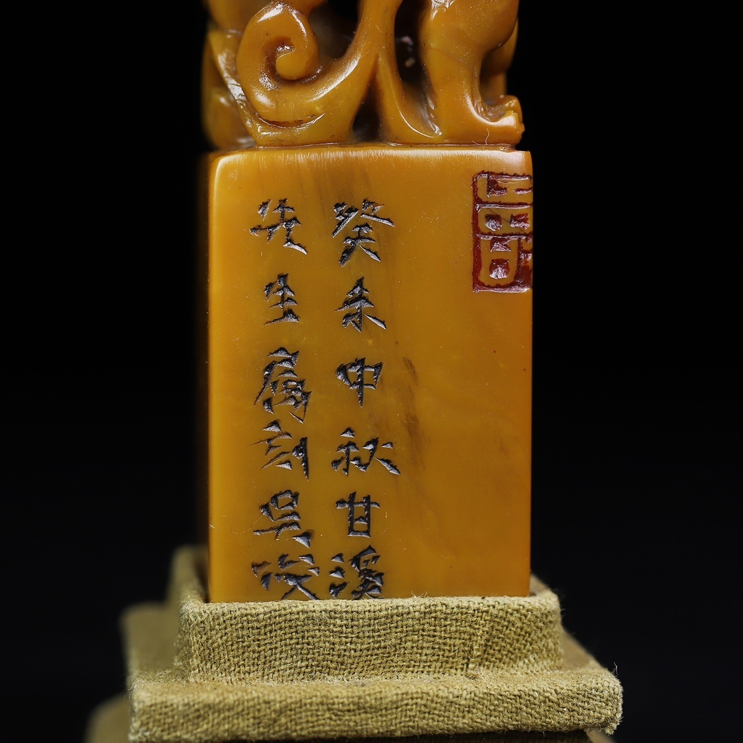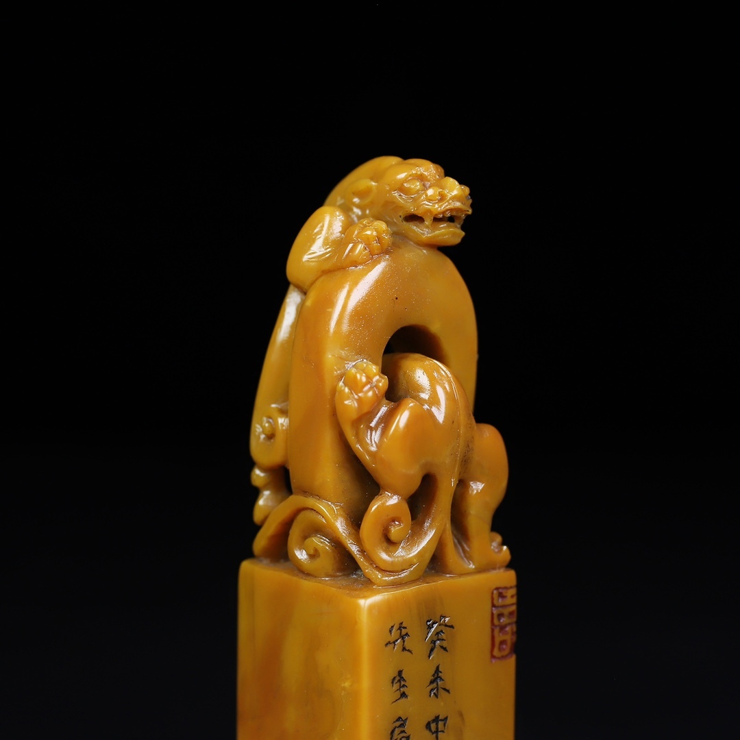館蔵 寿山石 田黄石 瑞獣 印鑑 天然石 手彫 篆刻 古印材 極細工 中国古玩 古美味 骨董品 中国古美術 古美味 蔵出