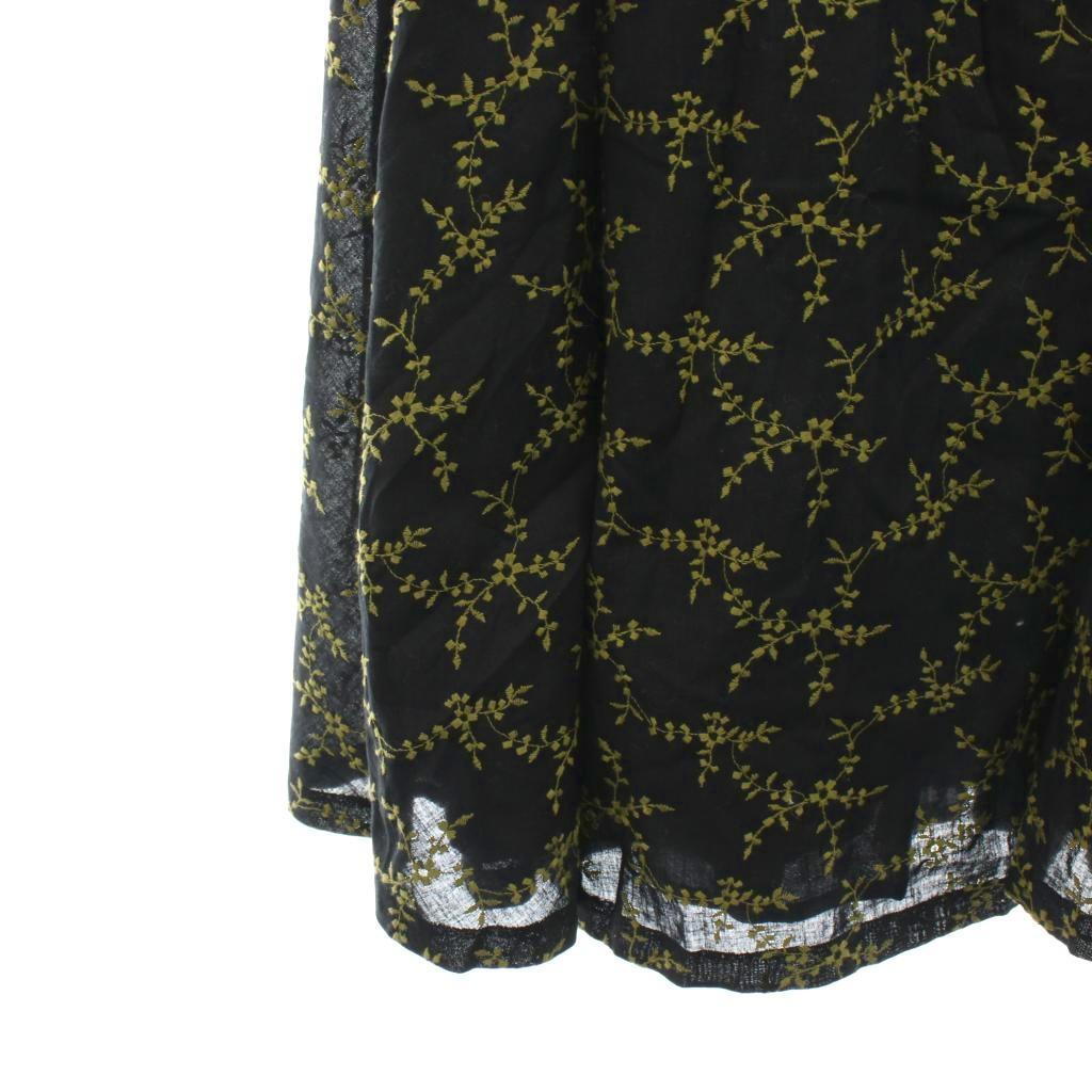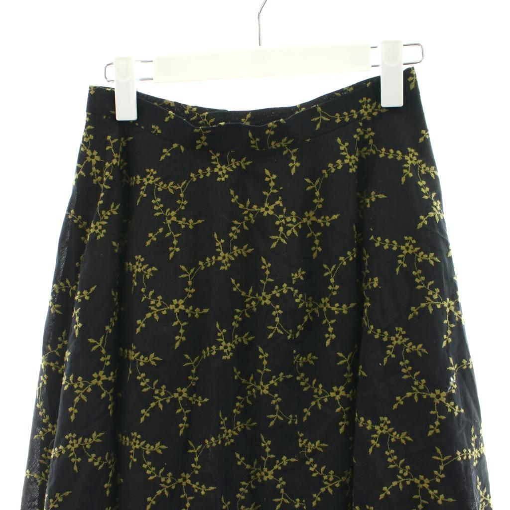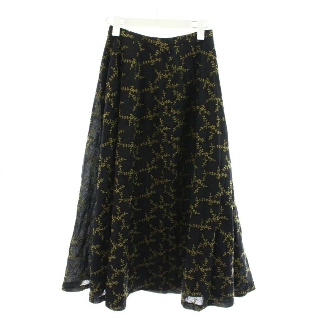シビラ SYBILLA フレアスカート ミモレ ロング 刺繍 コットン 麻 リネン混 L 黄緑 黒 ブラック GBHGD-54330 /AN48 レディース