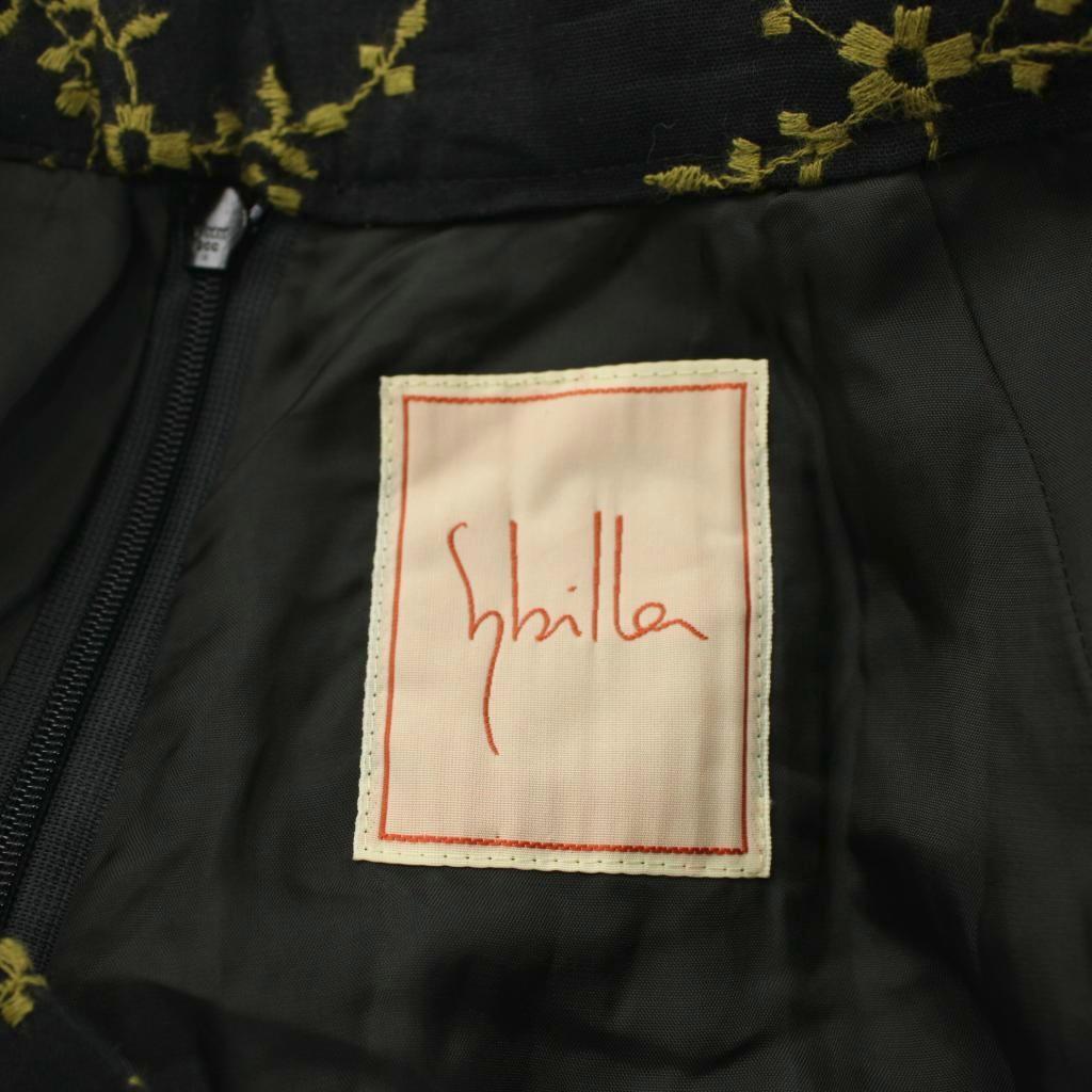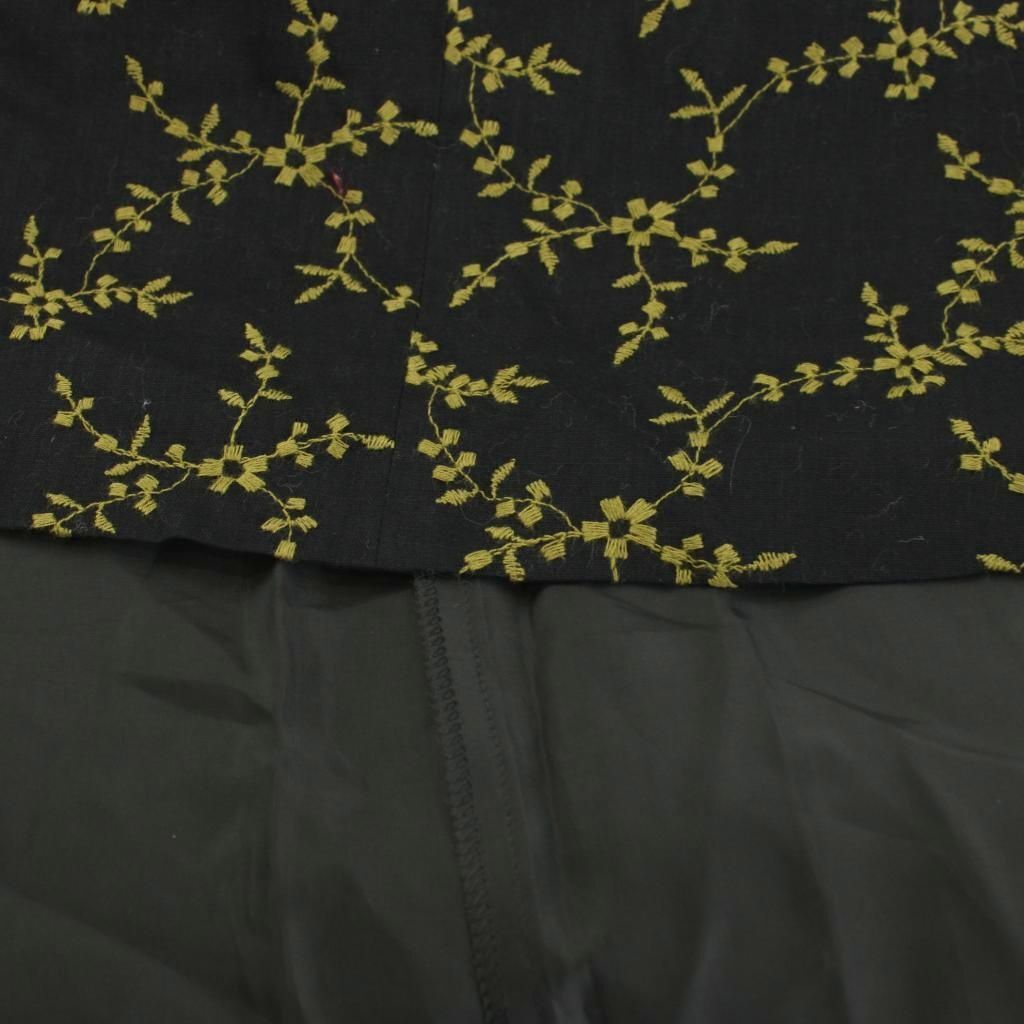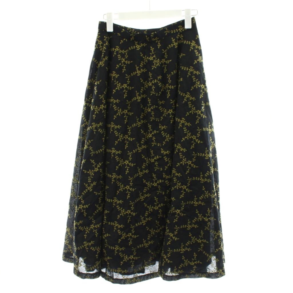 シビラ SYBILLA フレアスカート ミモレ ロング 刺繍 コットン 麻 リネン混 L 黄緑 黒 ブラック GBHGD-54330 /AN48 レディース