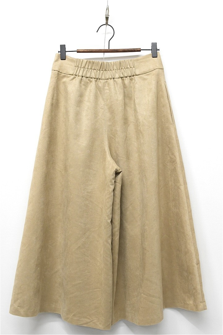 N436/ BEARDSLEY ビアズリー ワイドパンツ バギーパンツ ガウチョパンツ スウェード調 ウエストゴム 38 M ベージュ