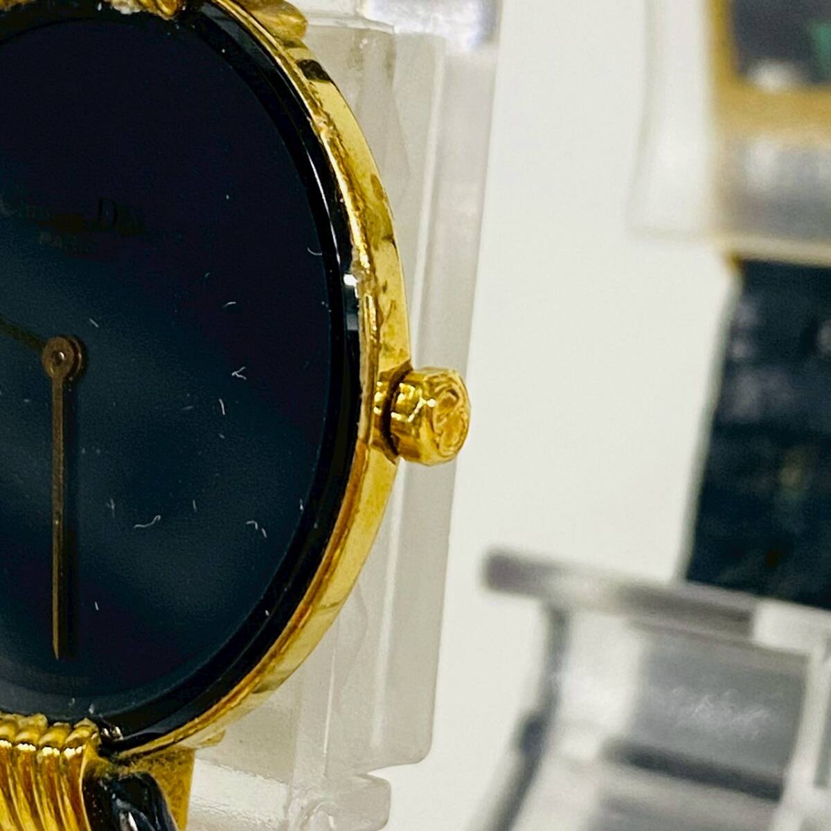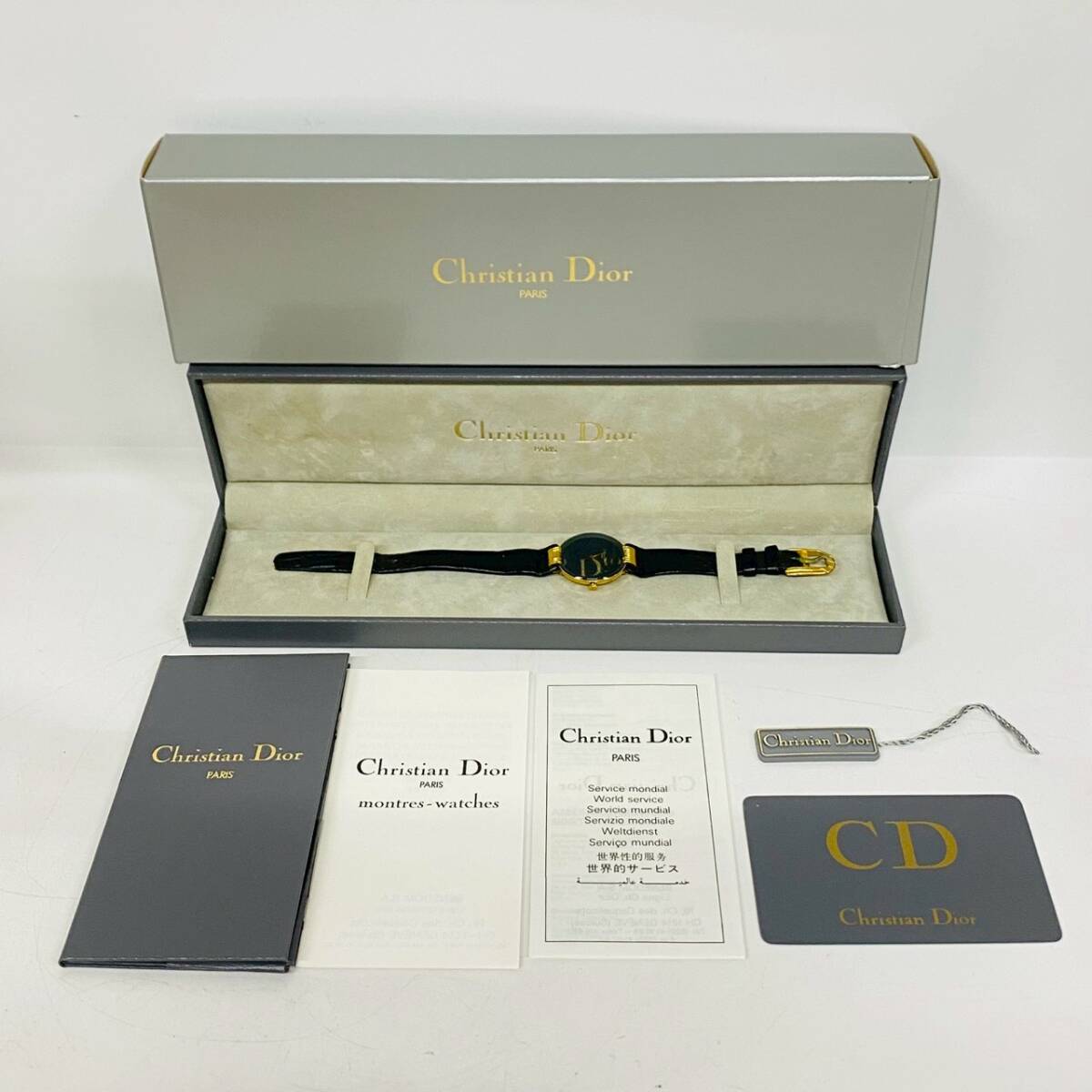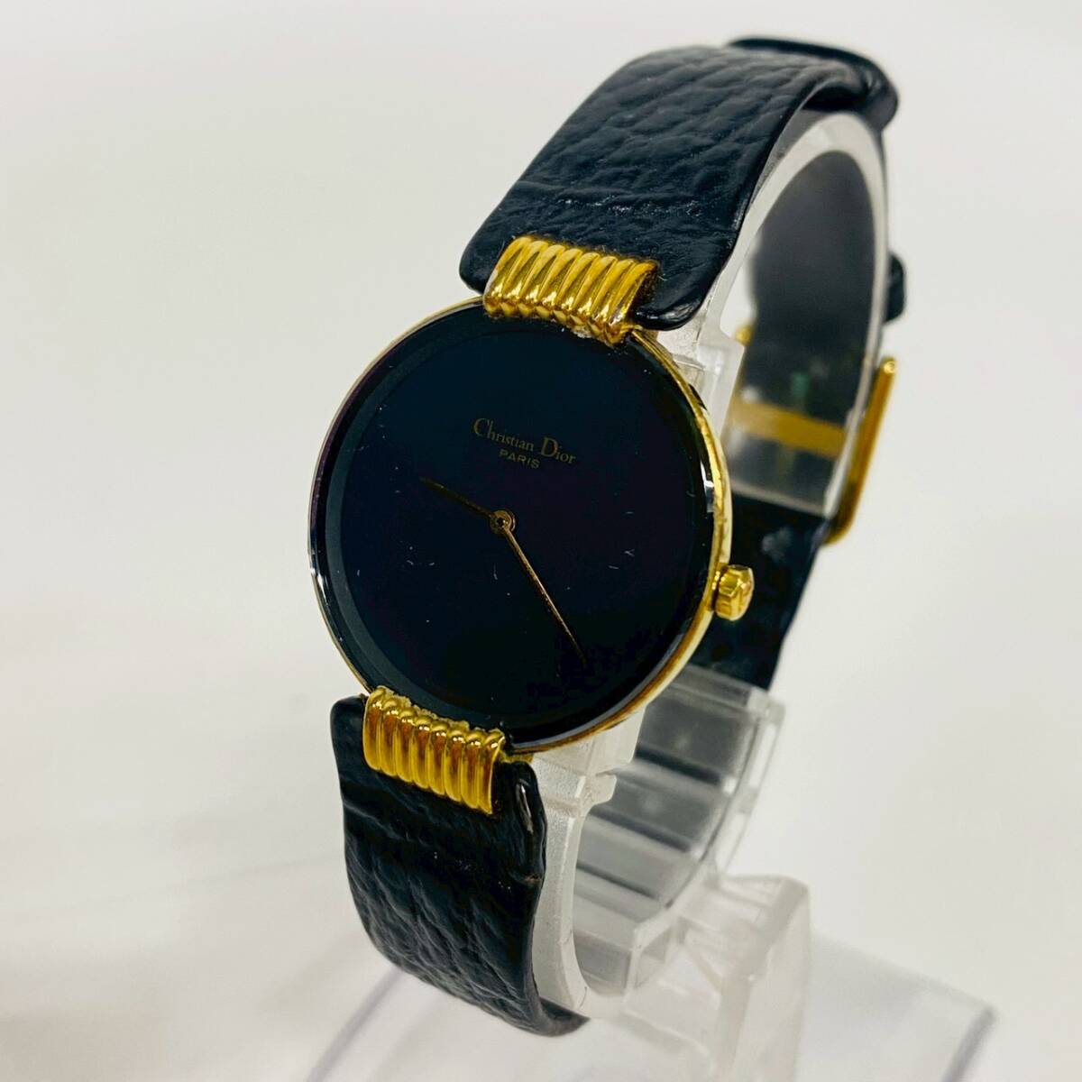 1円~【動作未確認】Christian Dior クリスチャンディオール バキラ 46153-3 クォーツ レディース腕時計 ブラック文字盤 ケース付き K102118