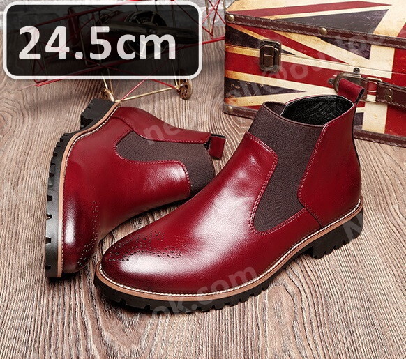 メンズ ショートブーツブーツ 24.5cm レッド PUレザー ミリタリーブーツ アウトドアシューズ 【n019】