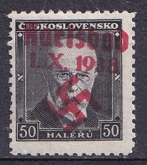 1938年ドイツ占領下 スデーテンランド(カールスバッド)加刷切手 50H (SCOTT A37)