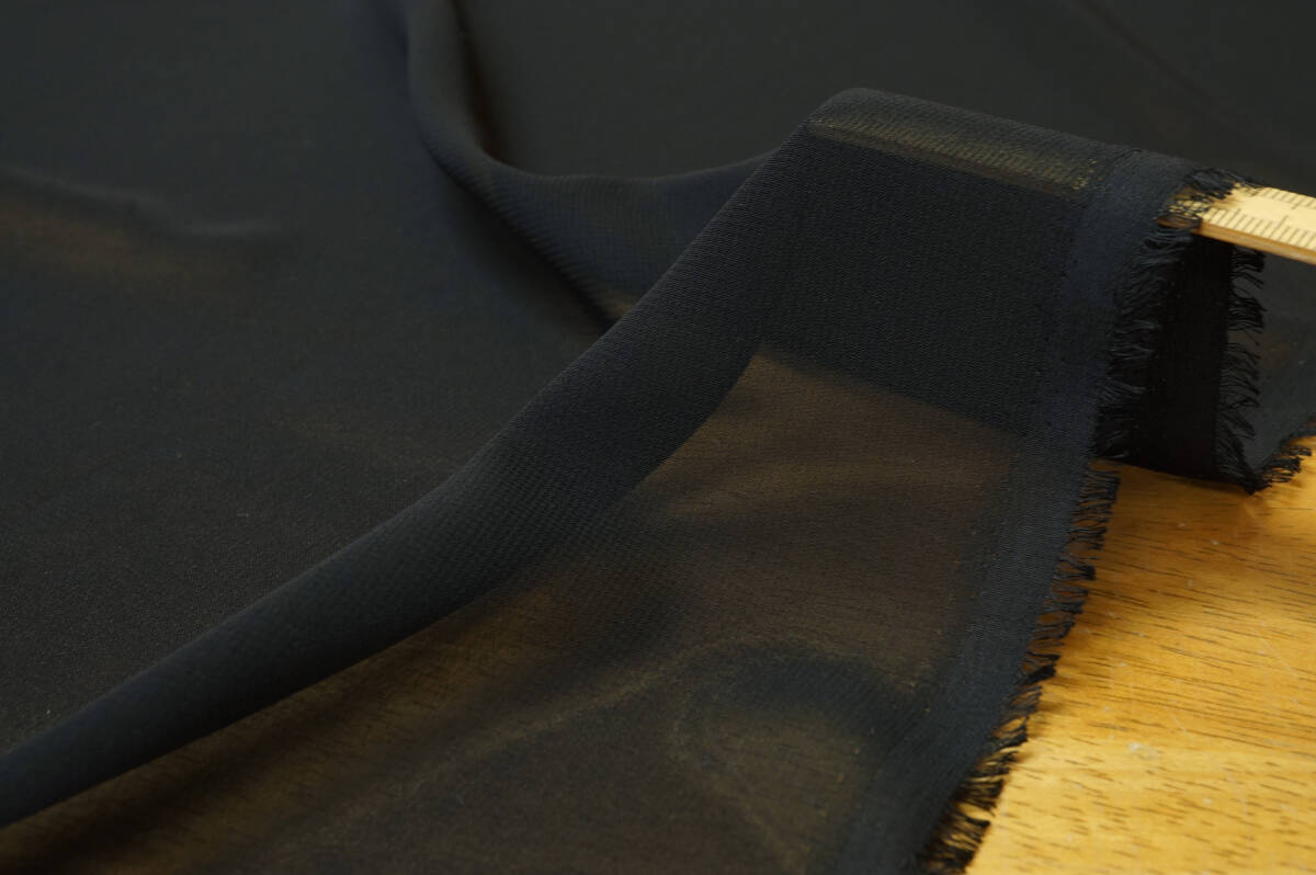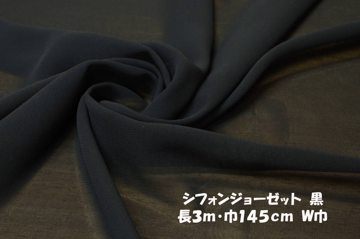 *シフォンジョーゼット ブラック 薄地~微薄ソフトひらひらドレープ強透過 長3m巾145㎝ 異素材組み合わせ レイヤード ふんわり袖 裾フリル