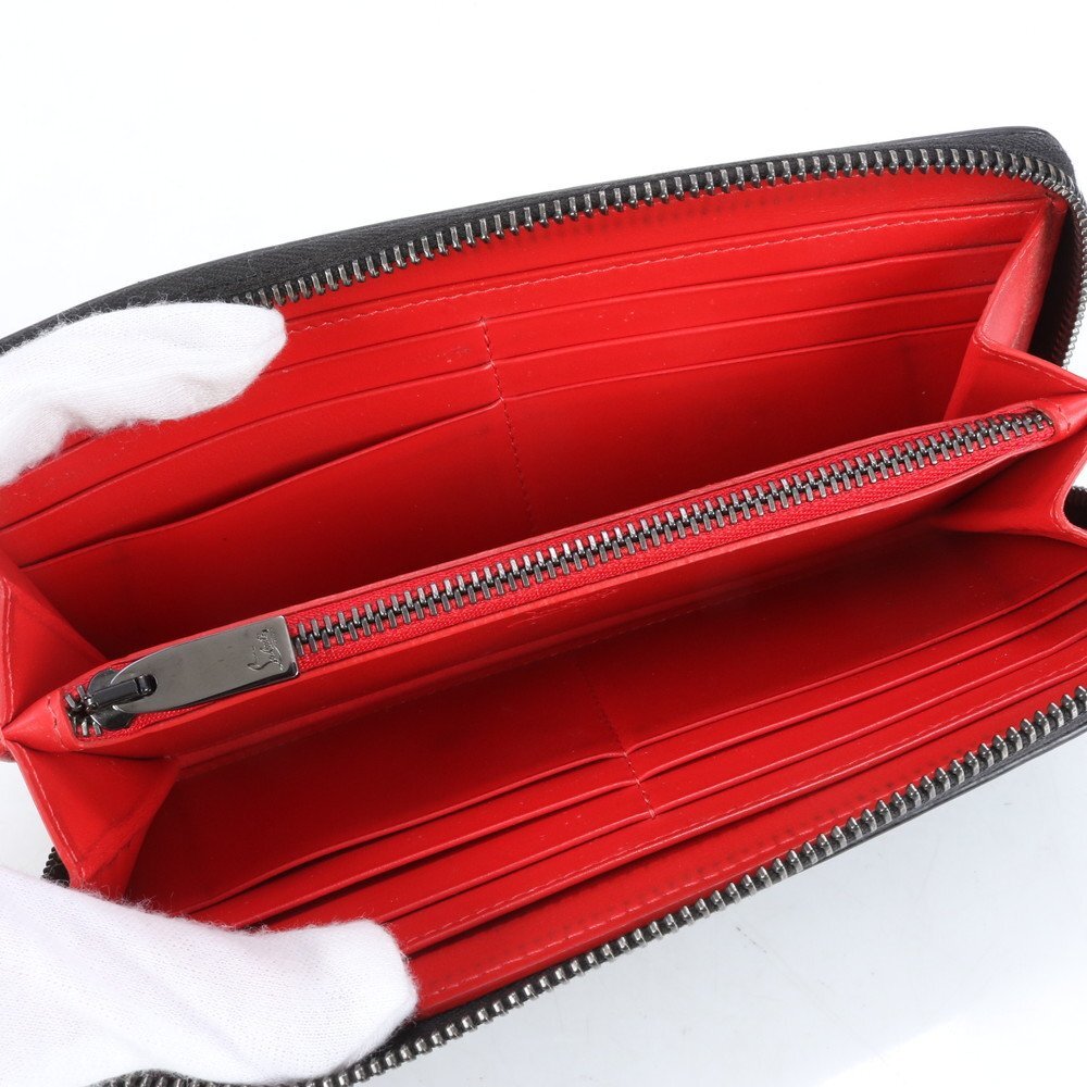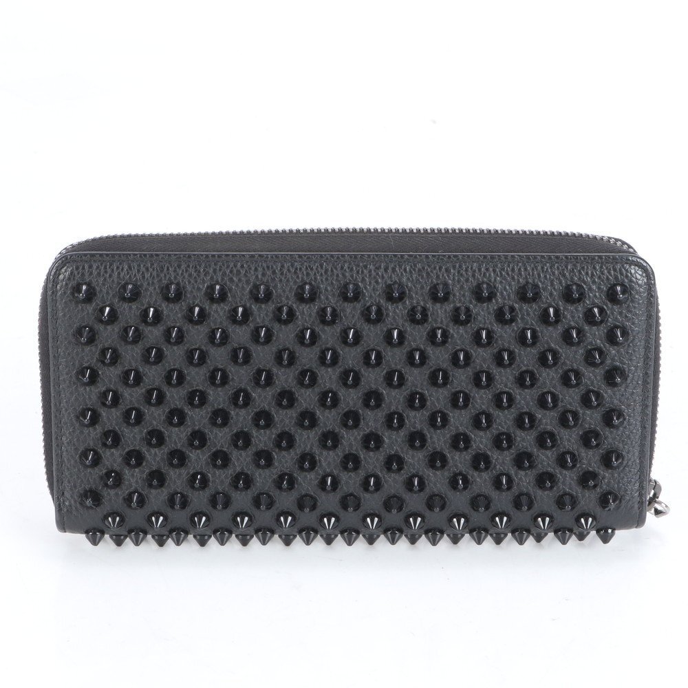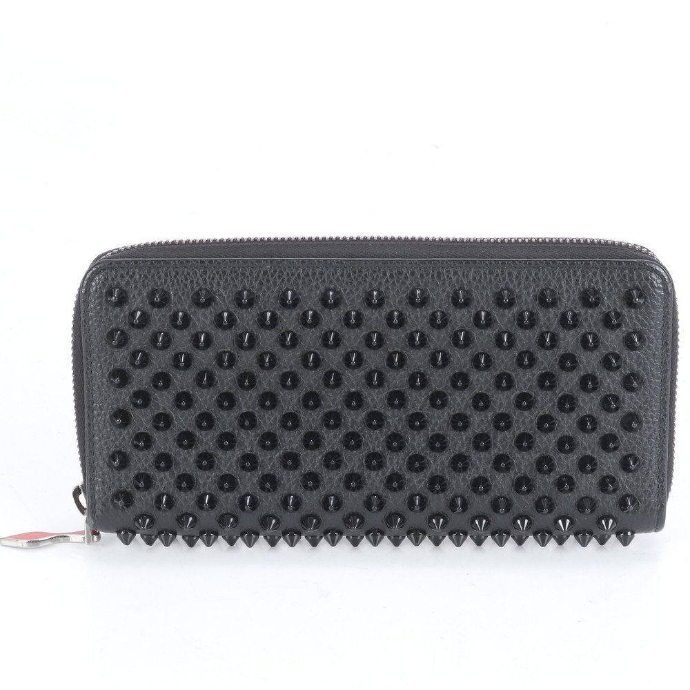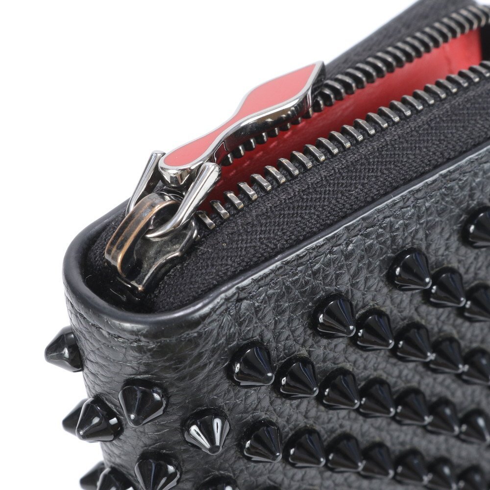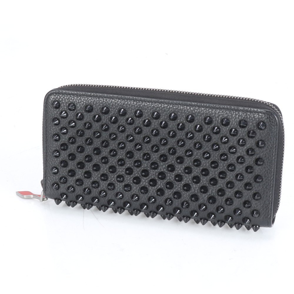 1円■極美品■クリスチャンルブタン■パネトーネ スパイク スタッズ レザー 長財布 二つ折り ロング ウォレット 黒 レディース RRE CJ3-4