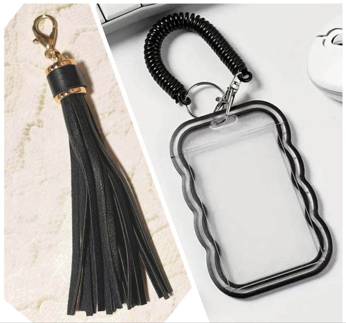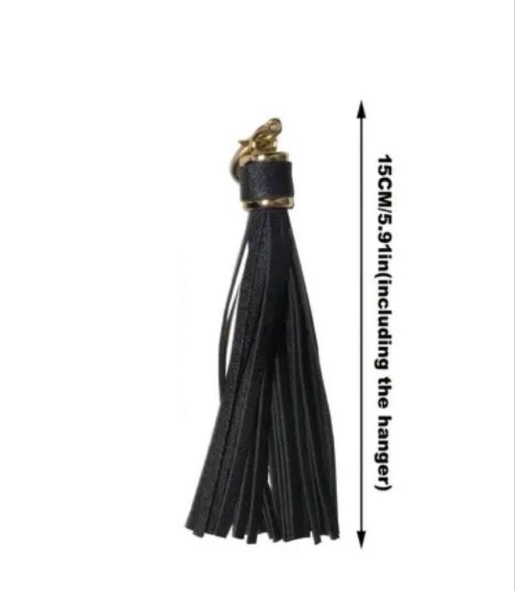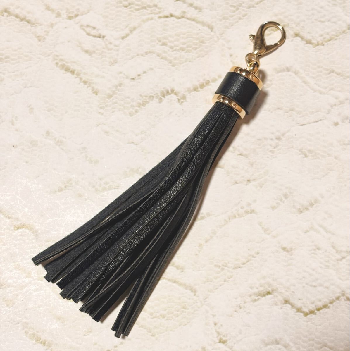 ブラックのフェイクレザーフリンジチャーム付きです☆