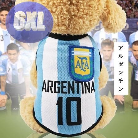 ドッグウェア 春夏 アルゼンチン 6XLサイズ サッカー 代表 ユニフォーム 犬服 大型犬 袖なし 通気性 柔らか 洋服 可愛い