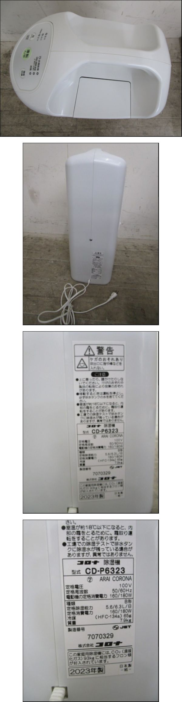 除湿機 CORONA コロナ CD-P6323 2023年製