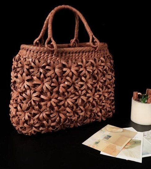 希少新品!極美品★高級UPハンドバック 職人手作り良品 山葡萄かごバッグ 手編み山葡萄籠バッグ バスケット籐かご