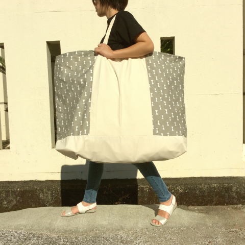 巨大特大サイズ!洗える3800円フラスコモノトーン(グレー)メガ特大昼寝布団バッグ手作り小物