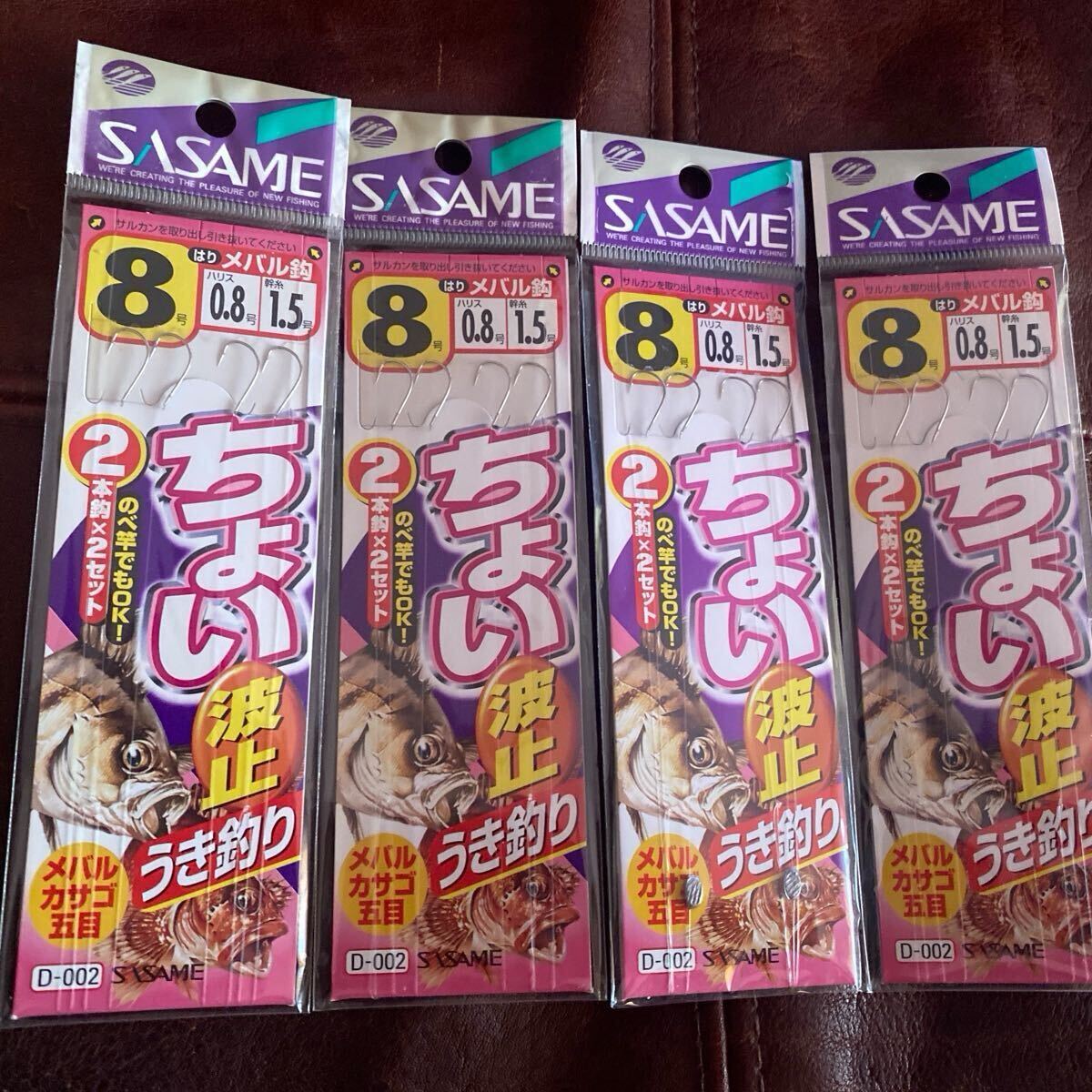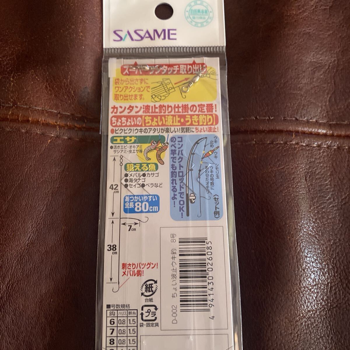 未使用品のSASAME ちょい波止 うき釣り 4ケセットになります。針8号、ハリス0.8号です。
