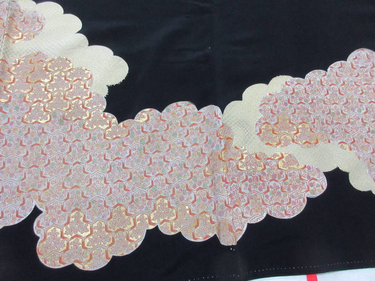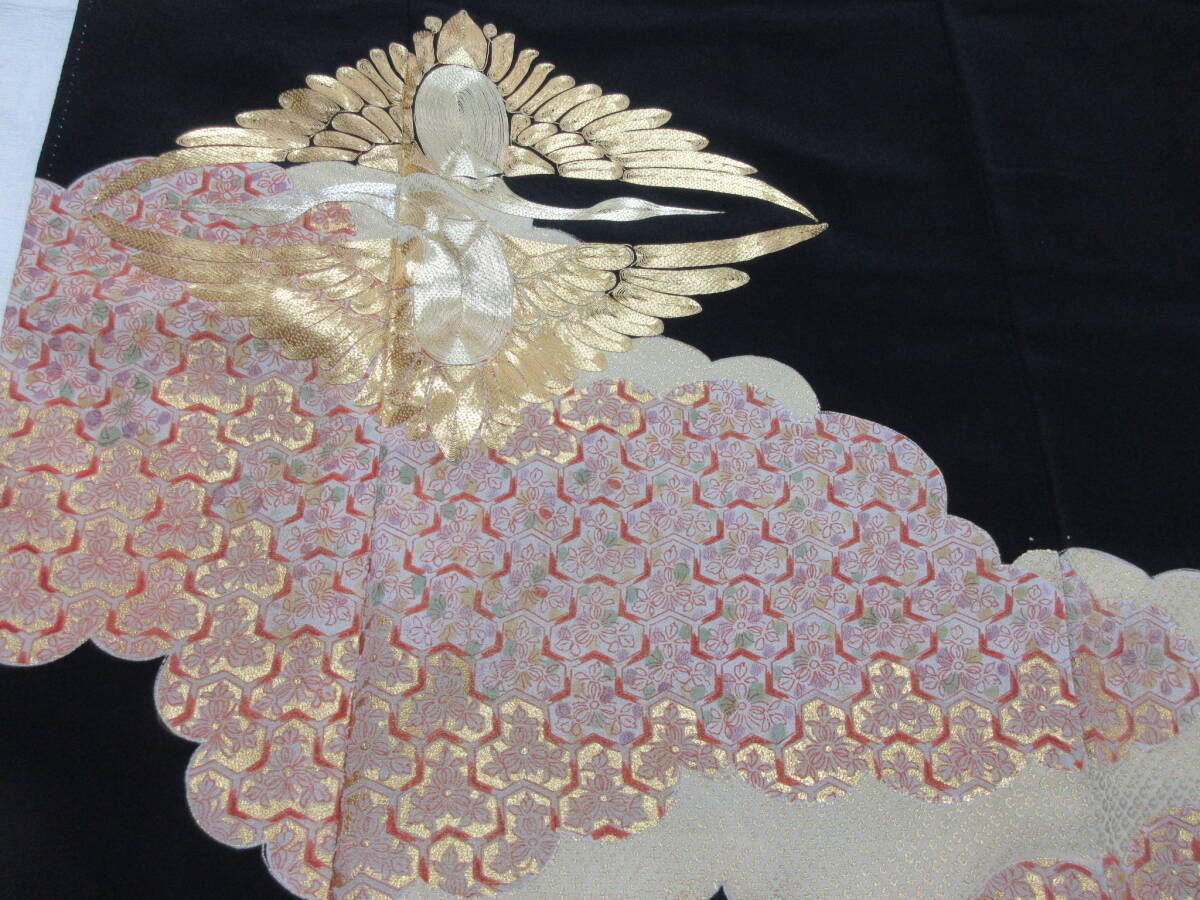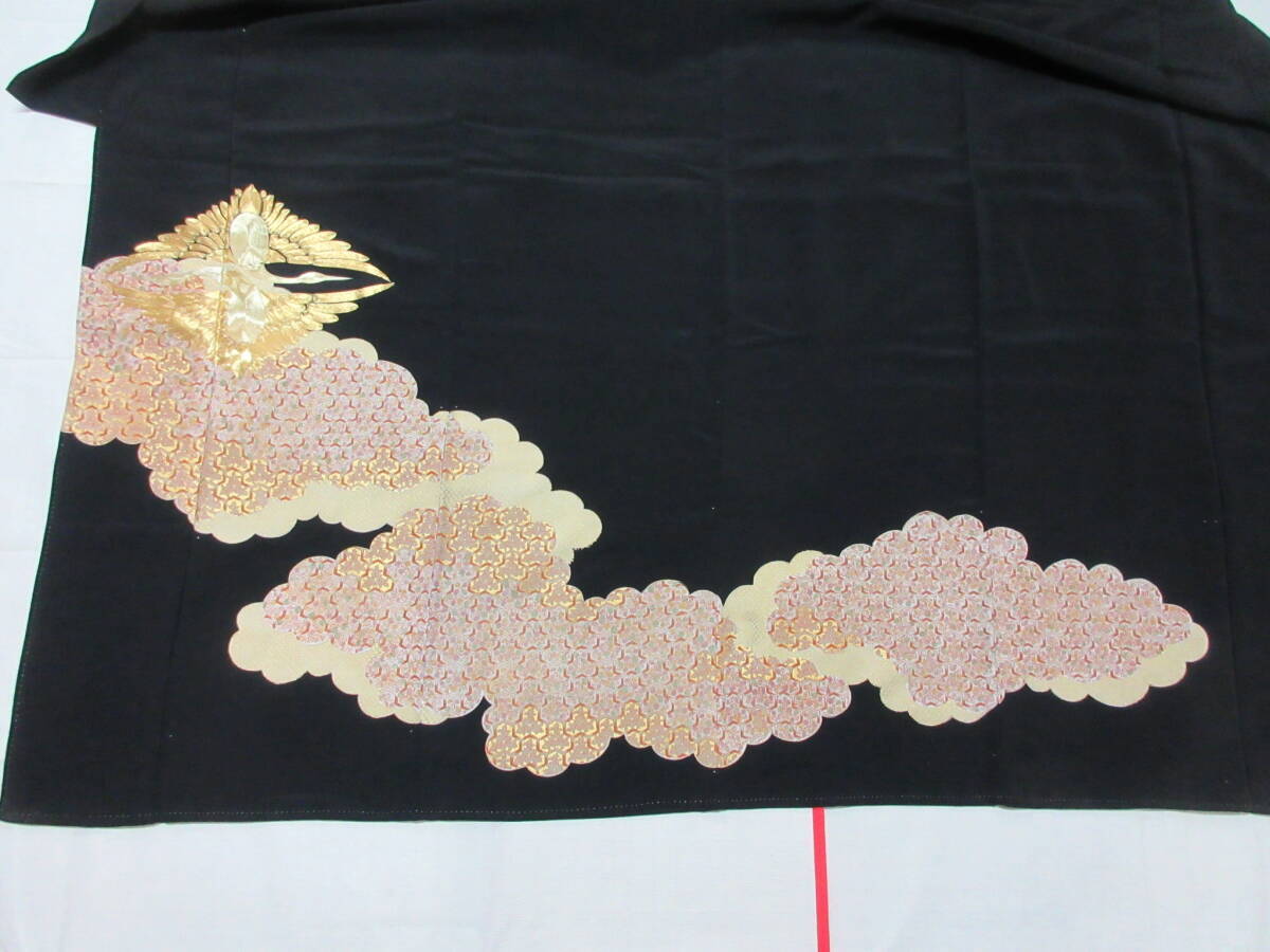 ★★箪笥の整理 正絹 留袖 比翼なし 鶴金駒刺入り雲模様留袖 丈肩約157.0cm