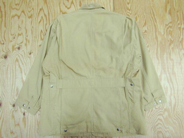| 商品説明 | ラルフローレンのハンティングジャケットです。 ヴィンテージでも人気のハンティングジャケットで、変形的なオリジナルデザインが魅力の一着。 内側には着脱可能のキルティングライナー付きで、ライナー単品でもキルティングベストとして着脱可能です。 風合い豊かなキャンバスコットンの生地感もラルフローレンならではの魅力と言えるでしょう。 お探しの方は是非この機会にご検討ください。 中古品ですので使用感、経年使用によるアタリや褪せ・薄汚れ、キルティングライナーの所々にステッチの糸抜け、左袖先上に色落ち(写真7枚目)、左右袖先に汚れ、右背中中央に汚れ(写真8枚目)、ライナーの左右胸に汚れ(写真9枚目)、襟コーデュロイ・ライナーの襟周りに汚れはありますが、その他特別に目立った汚れ、破れなどはなく、全体的にはまだまだ着て頂ける状態であると思います。 念のため神経質な方、状態にシビアな方、細かい事にこだわります方は入札を御遠慮下さい。 商品の状態についてはあくまで当方の主観となりますので、その点をご理解の上、入札をお願い致します。 カラー: ベージュ 素材: 綿100% 表記サイズ M (色 、柄などについては商品写真をご確認下さい。) 肩幅 58cm 身幅 63cm 着丈 77cm 袖丈 56cm (素人採寸のため多少の誤差はご容赦下さい) |