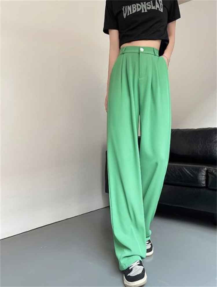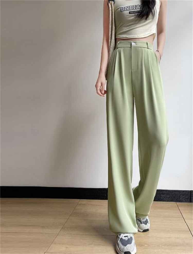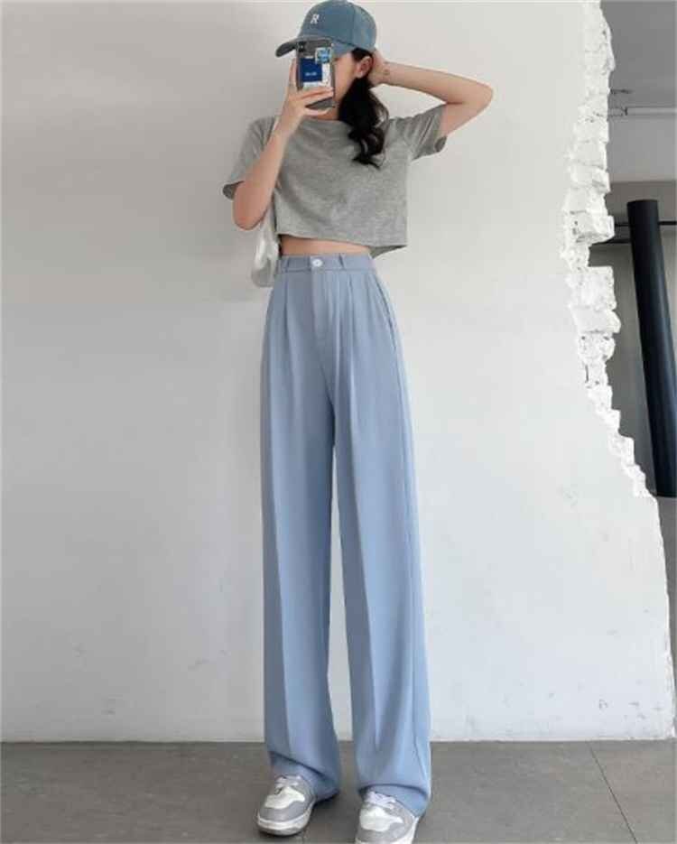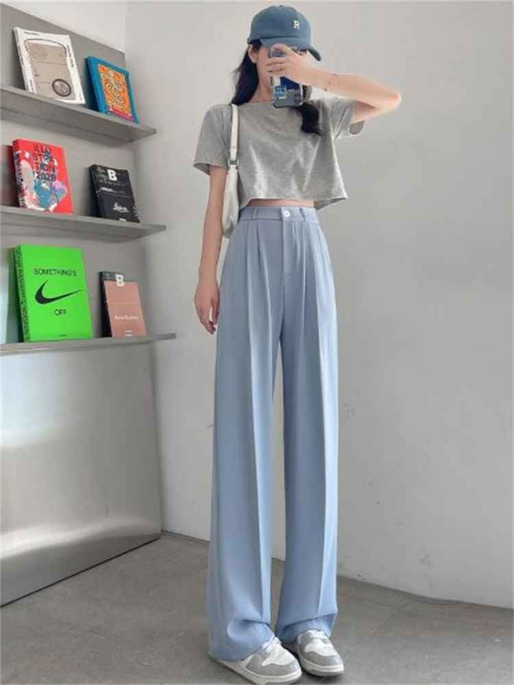 カジュアルパンツ ハイウエスト スリム ワイドパンツ レディース 大きいサイズあり XL ブルー(ロングパンツ)