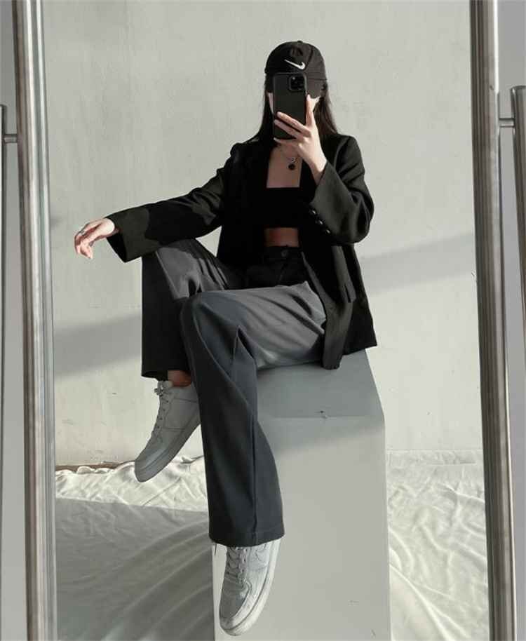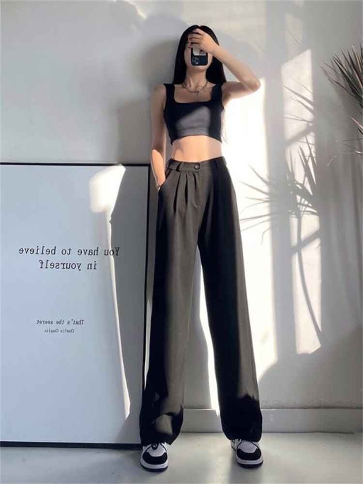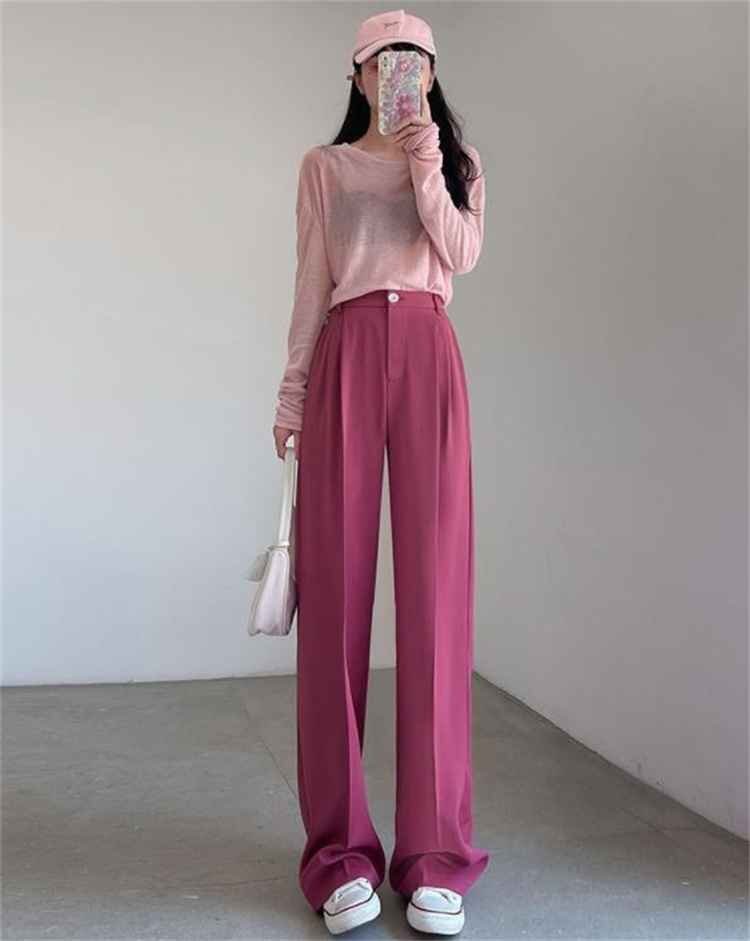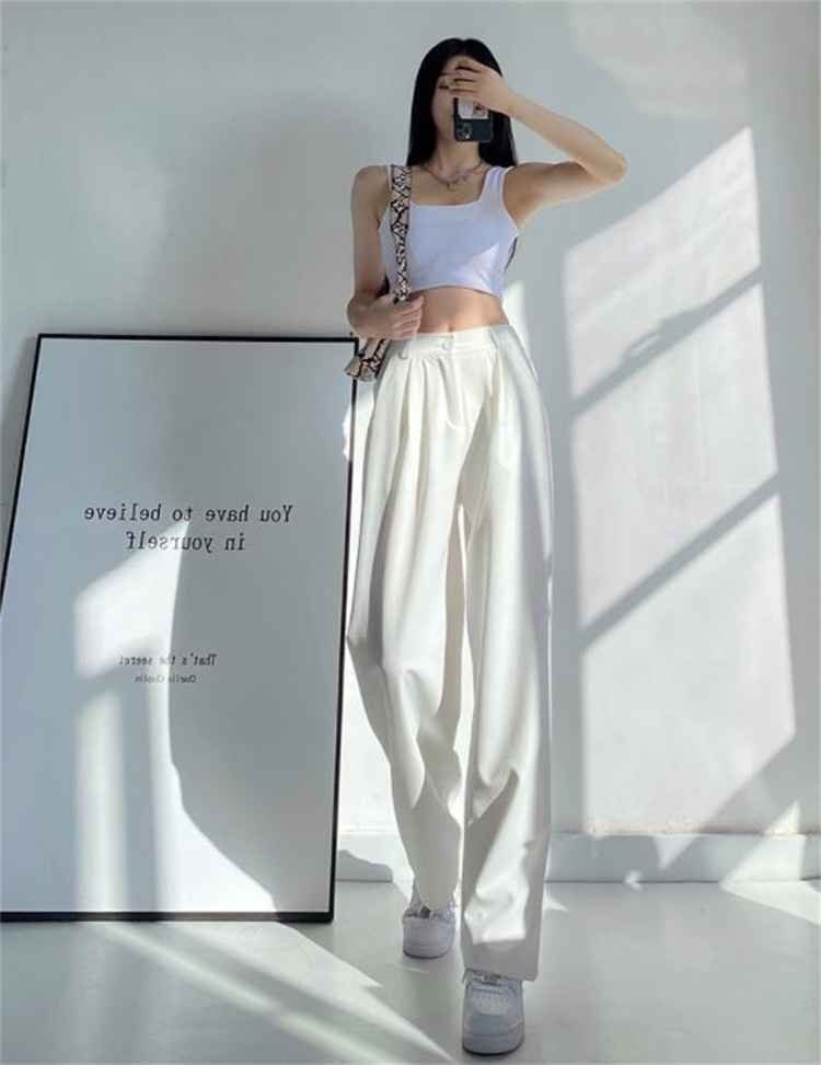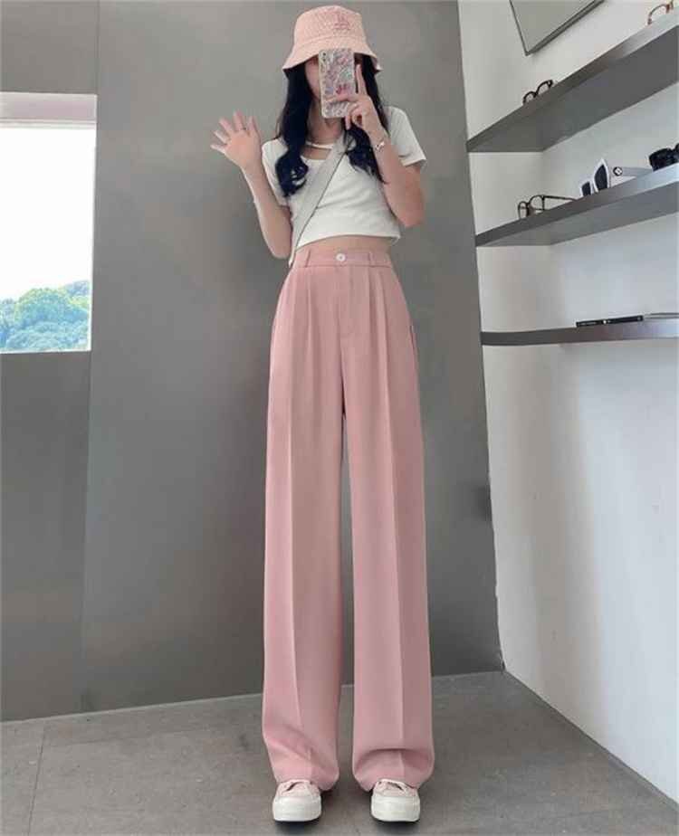 カジュアルパンツ ハイウエスト スリム ワイドパンツ レディース 大きいサイズあり XL ブルー(ロングパンツ)