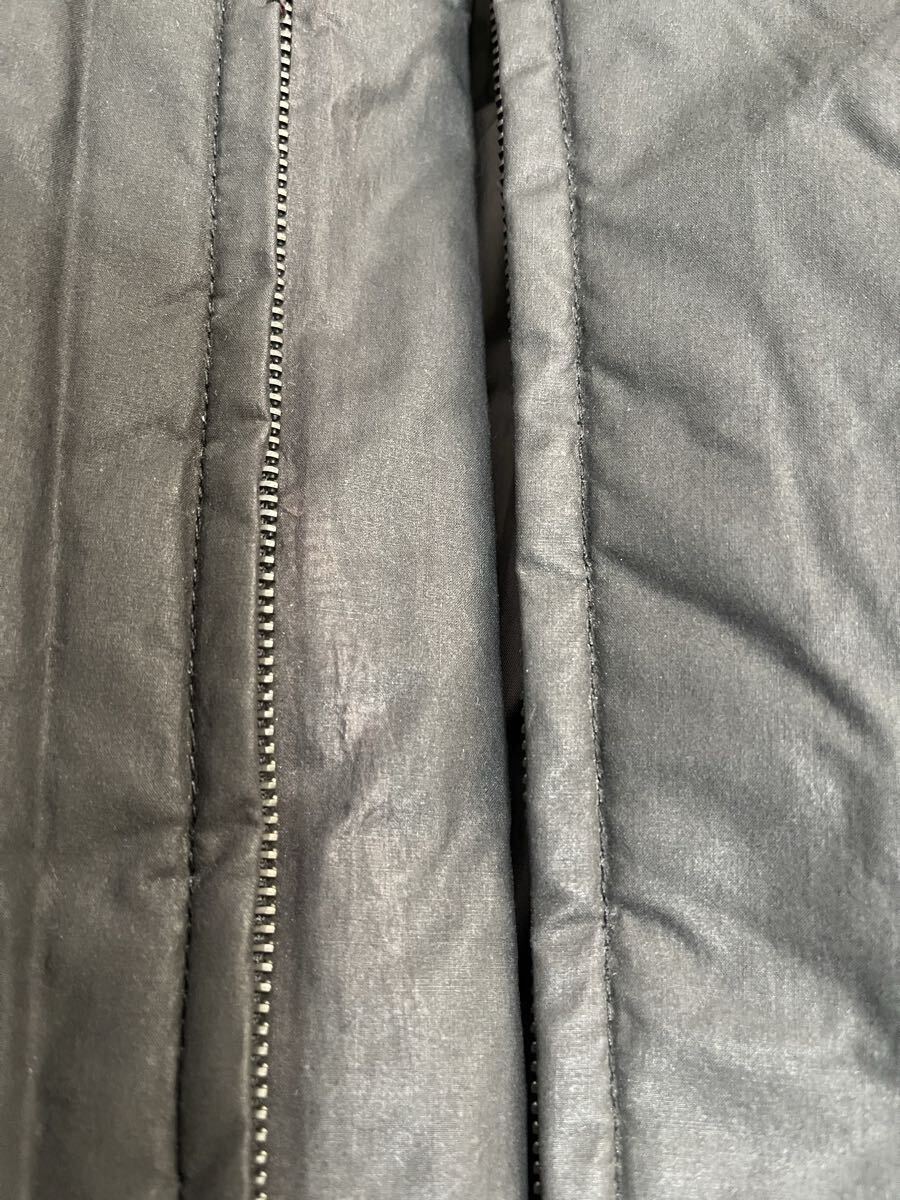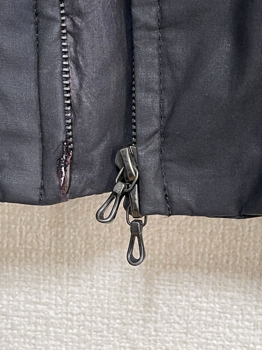 ジップの裾にダメージとジップ周りの生地に使用によるスレがございます。スレに関しては閉めれば分かりません。着用に問題はなく、まだまだ使って頂ける商品となります。