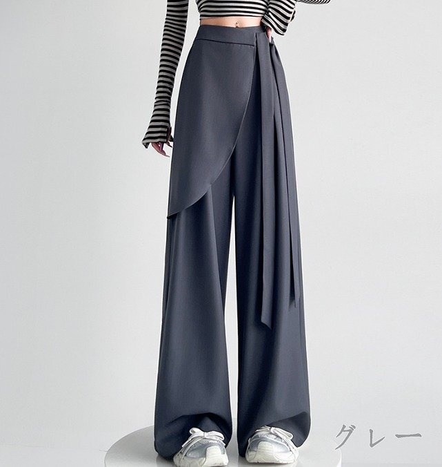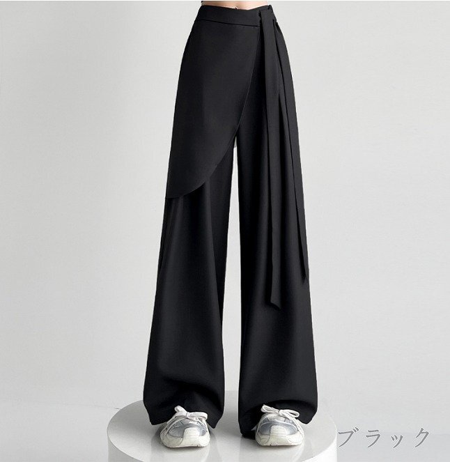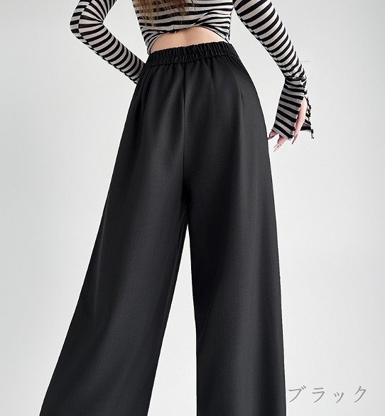 ワイド バギーパンツ ハイウエスト 切り替え 体型カバー 着痩せ L ブラック