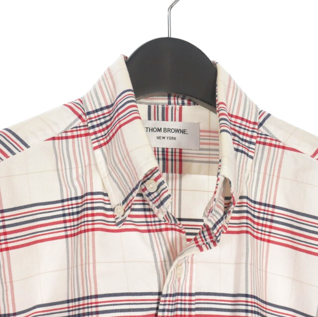 トムブラウン THOM BROWNE トリコロールチェック ボタンダウン オックスフォードシャツ 長袖 1 ホワイト/レッド/ブルー アメリカ製