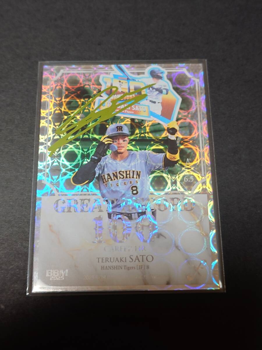 2025 BBM FUSION 阪神 佐藤輝明 GREAT RECORD キウイグリーン箔サイン 123/200です。