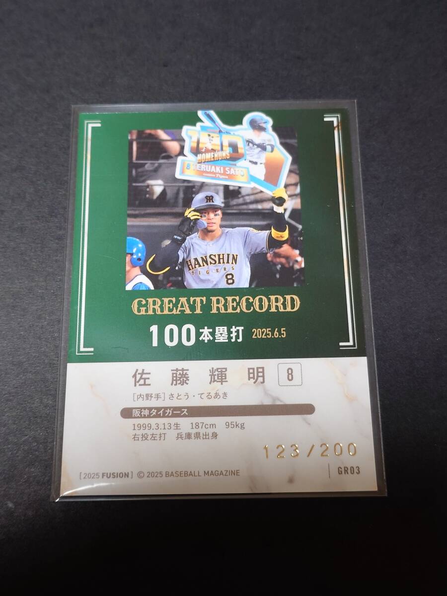 2025 BBM FUSION 阪神 佐藤輝明 GREAT RECORD キウイグリーン箔サイン 123/200
